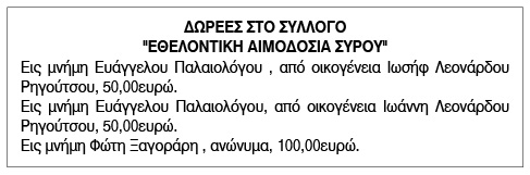 Ευχαριστήριο για δωρεές από την Εθελοντική Αιμοδοσία Σύρου Δευτέρα 24 Ιουλίου 2023 - 12:30 Συντάκτης: Ρένα Ρούσσου Κείμενο Βλέπε εικόνα. Αριθμός Φύλλου 6172 Κατηγορία Δωρεές