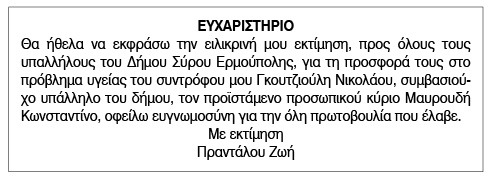 Ευχαριστήριο Πραντάλου Ζωή Δευτέρα 20 Νοεμβρίου 2023 - 14:02 Συντάκτης: Ρένα Ρούσσου Κείμενο Βλέπε εικόνα Αριθμός Φύλλου 6251 Κατηγορία Ευχαριστήριο