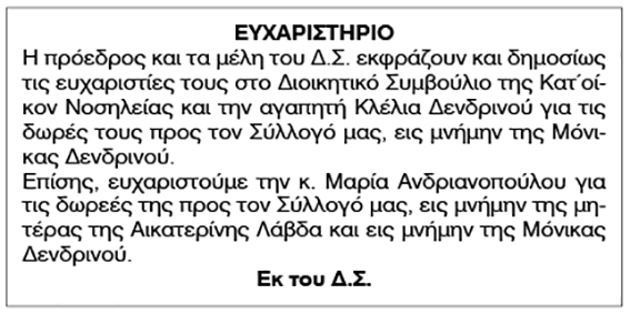 Ευχαριστήριο Συλλόγου Καρκινοπαθών και Φίλων Κυκλάδων Πέμπτη 12 Νοεμβρίου 2020 - 13:02 Συντάκτης: Κατερίνα Βιδάλη Κείμενο Βλέπε εικόνα Αριθμός Φύλλου 5499 Κατηγορία Ευχαριστήριο