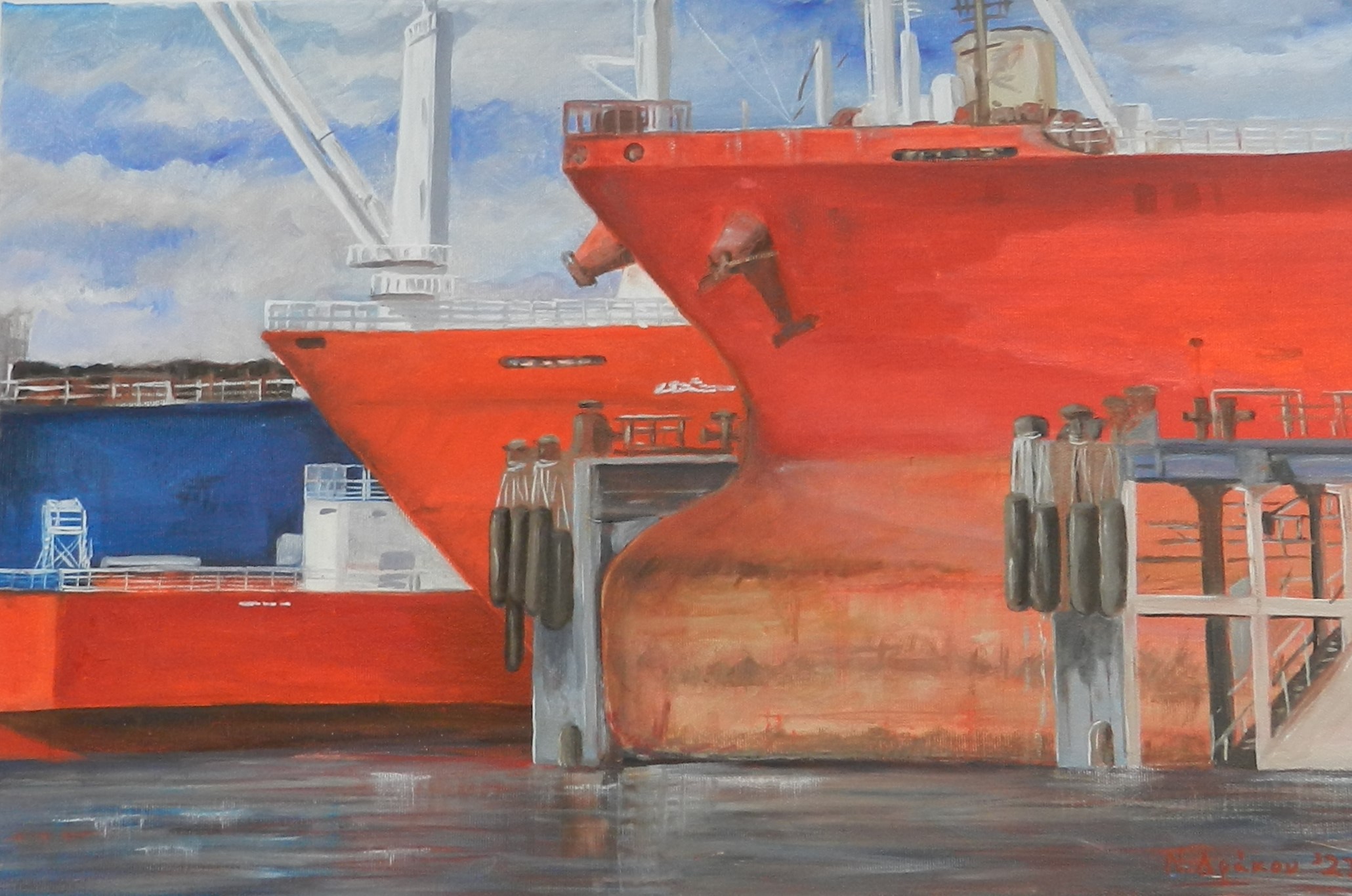 Αναφορικά, τώρα, με το “μικρόβιο” της ζωγραφικής η Νίκη Δράκου σημειώνει: “Δεν ξέρω πως άρχισα να τα ζωγραφίζω εδώ και τρία-τέσσερα χρόνια. Σίγουρα είναι ένας κόσμος ατελείωτος που δεν χωρά στον καμβά, που προκαλεί δέος, που δεν αποτυπώνεται εύκολα. Ένα πολύ μικρό κομμάτι τους είναι εδώ.  Πολλές φορές ζωγραφίζεις για να καταπολεμήσεις τους φόβους σου, νομίζω πως αυτό συνειδητοποίησα στην πορεία. Τα πλοία όταν ήμουν  παιδί, μου φαινόταν τεράστια. Εμείς στο επίπεδο της θάλασσας δίπλα τους και το βλέμμα μας να υψώνεται στην πρύμνη τους… Δεν νοιώθαμε κανένα είδους φόβο όταν παίζαμε με τους κάβους τους. Μετά είχα την εντύπωση πως τα πλοία που δεν μας παίρνουν μαζί τους, μας αφήνουν με τα ανεκπλήρωτα όνειρά μας στην στεριά, να συμβιβαζόμαστε με αυτά και να ελπίζουμε στο κάποτε”.