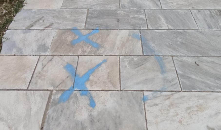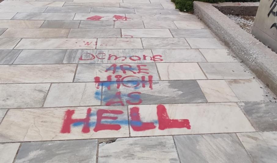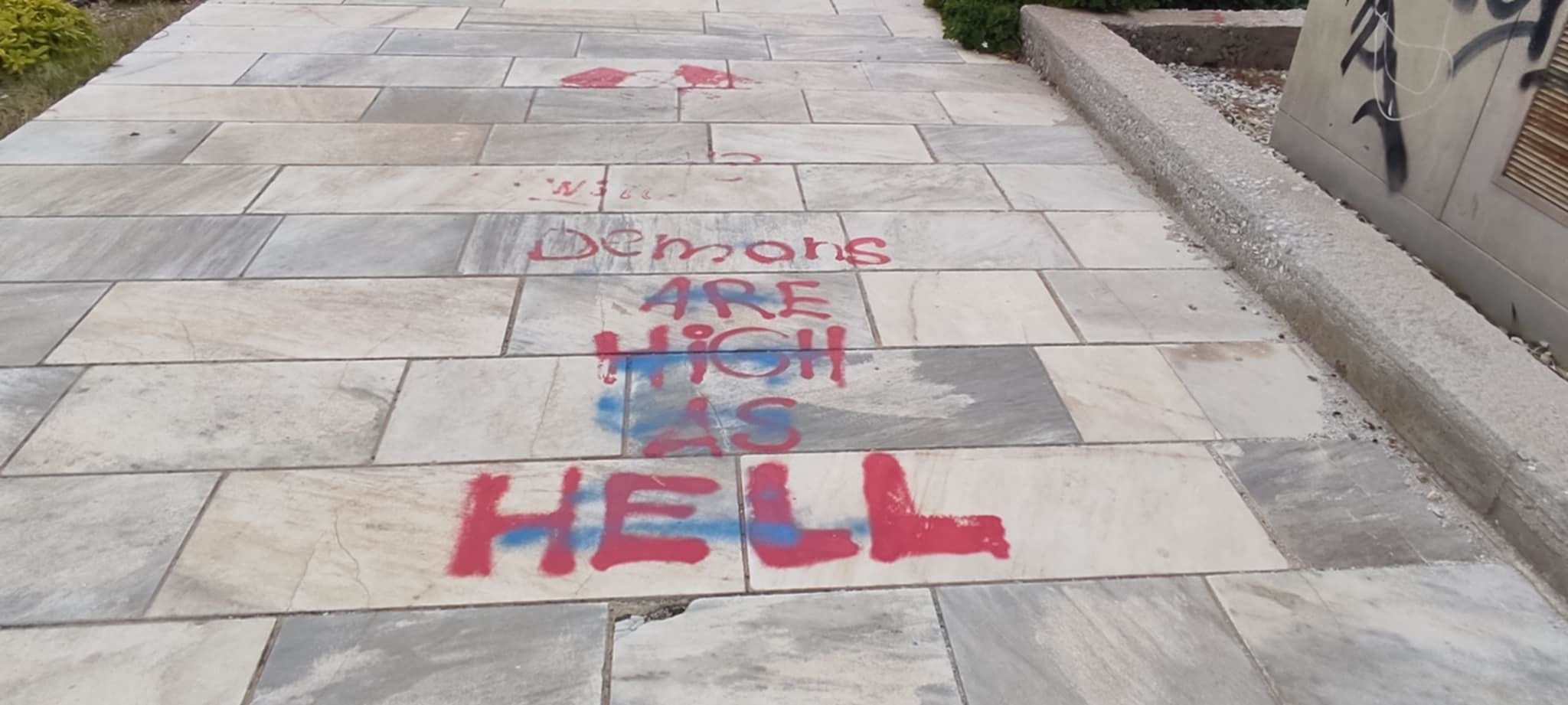 Για μία ακόμη φορά, οι αρμόδιοι για την περιοχή καλούνται να φροντίσουν για την απομάκρυνση του χρώματος που είναι πάνω στα μάρμαρα, εργασία κοστοβόρα και δύσκολη.