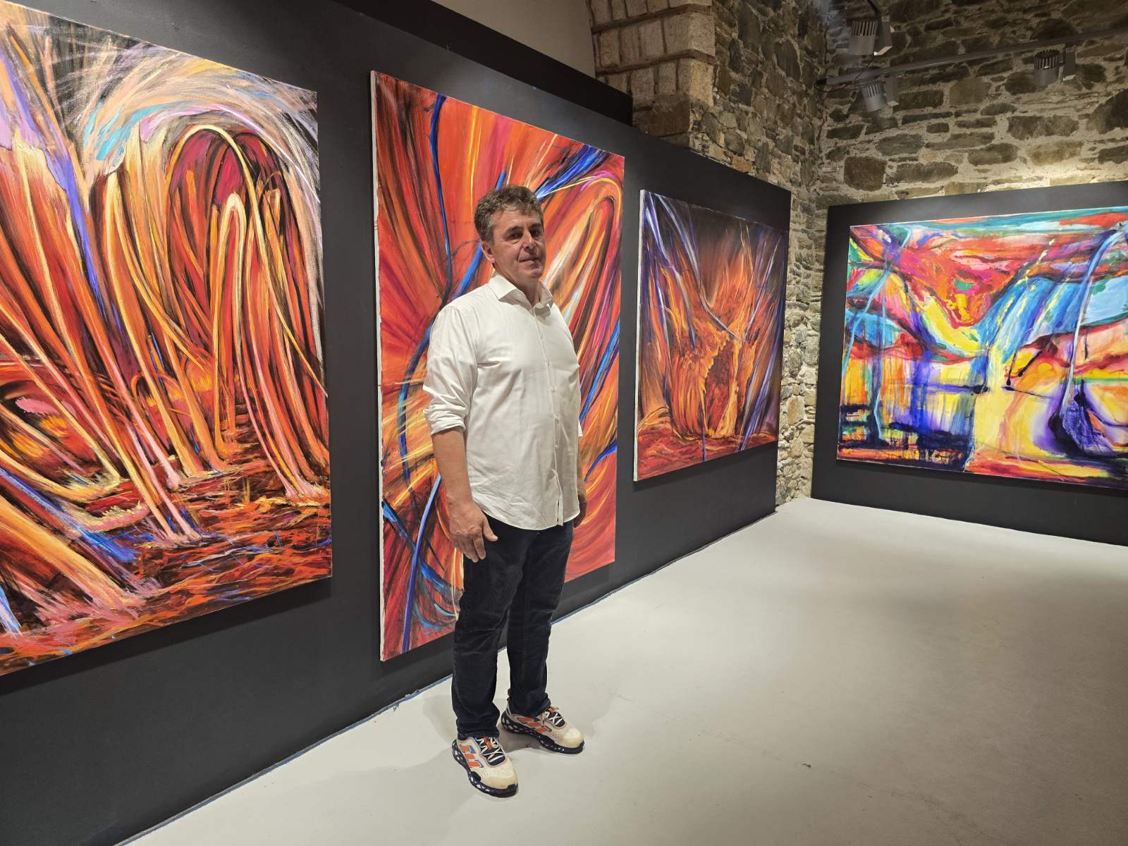 "Επισκέφθηκα τη Σύρο τον Δεκέμβριο, αλλά ουσιαστικά είναι η πρώτη φορά που κάνω έκθεση στο νησί. Ο χώρος της Πινακοθήκης Κυκλάδων είναι εκπληκτικός και αυτός είναι και ο λόγος που εκθέτω εδώ τα έργα μου. Η Σύρος είναι ένα από τα λίγα νησιά που ενδιαφέρεται τόσο πολύ για τα εικαστικά, δημιουργώντας ουσιαστικά έναν πόλο για την τέχνη", ανέφερε, καλώντας παράλληλα τον κόσμο να επισκεφθεί την έκθεση "Εφήμερες φλόγες” , η οποία θα διαρκέσει έως τις 25 Οκτωβρίου, αφήνοντα ανοιχτό το ενδεχόμενο να υπάρξει μία μικρή παράταση στη λειτουργία της.