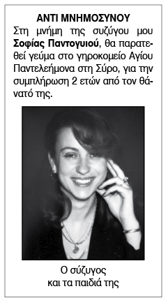 Γεύμα αντί μνημοσύνου για Σοφία Παντογυιού Τετάρτη 8 Μαρτίου 2023 - 15:05 Συντάκτης: Ρένα Ρούσσου Κείμενο Βλέπε εικόνα. Αριθμός Φύλλου 6078 Κατηγορία Μνημόσυνο
