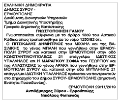 Γνωστοποίηση γάμου Πιτσικάλη Δημήτρη και Μαραγκού Σοφίας