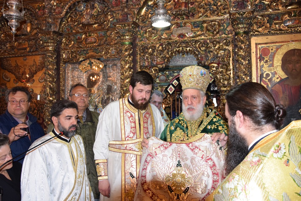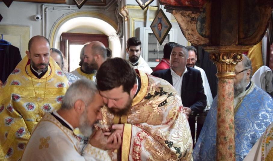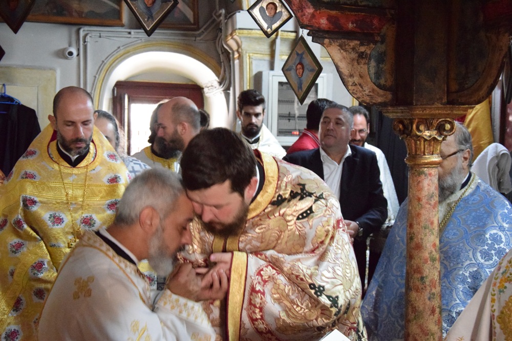 Προ του πέρατος της Θείας Λειτουργίας, ο Σεβασμιώτατος κ. Δωρόθεος Β' χειροθέτησε τον νέο Πρεσβύτερο σε Αρχιμανδρίτη, προσφέροντάς του τον επιστήθιο Σ ταυρό και το Επιγονάτιο, που έφερε κατά τη διάρκεια της Θείας Λειτουργίας.
