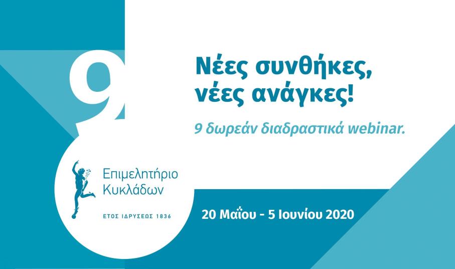 Την επιχειρηματική προσαρμογή στα νέα δεδομένα που διαμορφώνει ο κορωνοϊός στον Τουρισμό αλλά και σε κάθε κατηγορία της οικονομίας επιδιώκει το Επιμελητήριο Κυκλάδων, διοργανώνοντας εννέα νέα δωρεάν εκπαιδευτικά διαδραστικά webinar για όλους τους ενδιαφερόμενους στον νησιωτικό νομό.