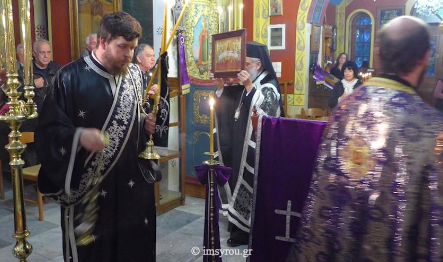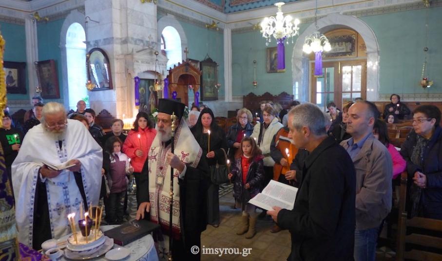 Ο Σεβασμιώτατος κ. Δωρόθεος Β' χθες, Μεγάλη Τετάρτη, το απόγευμα τελέσε το ιερό Μυστήριο του Ευχελαίου διαδοχικά στους Ιερούς Ναούς Αγίου Παντελεήμονος (Γηροκομείου), Αγίων Κωνσταντίνου και Ελένης, στην περιοχή Πέτρα, και Ταξιαρχών Ερμουπόλεως, προς το πολυπληθές εκκλησίασμα των οποίων μίλησε για την ψυχοσωματικής θεραπείας αξία του παραδεδομένου από τον Κύριο και τους Αποστόλους ιερού αυτού Μυστηρίου.