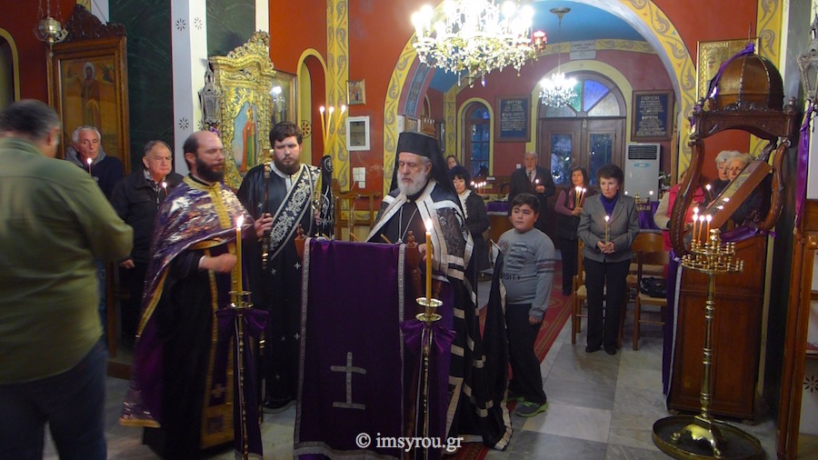 Το βράδυ, προεξήρχε της Ακολουθίας του Νιπτήρος στον Ιερό Ναό της Υψώσεως του Τιμίου Σταυρού Παρακοπής.