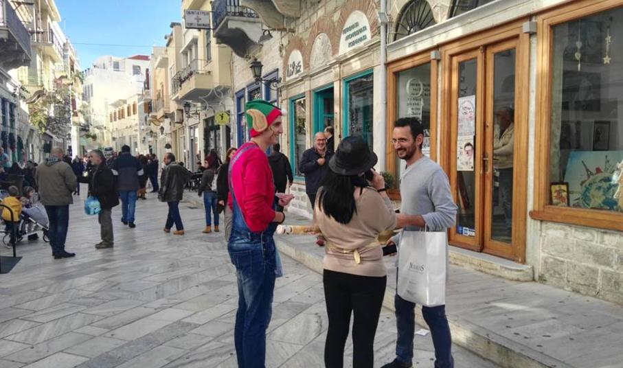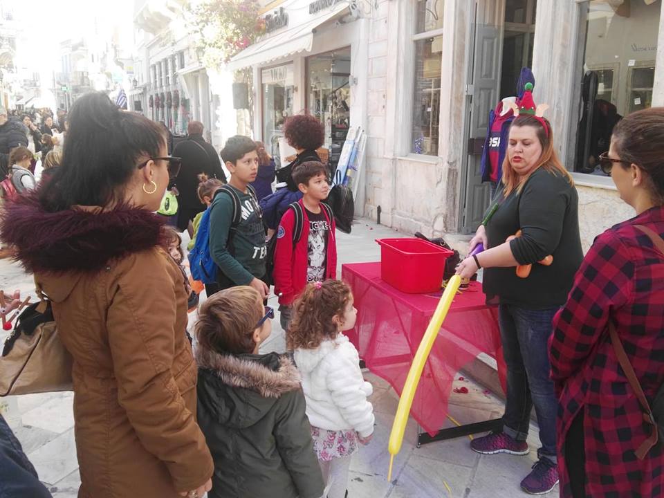 Με χριστουγεννιάτικες μελωδίες, ευχές και κυρίως παιδικά χαμόγελα πλημμύρισε το κέντρο της Ερμούπολης, παραμονή της πιο γλυκιάς γιορτής του έτους.