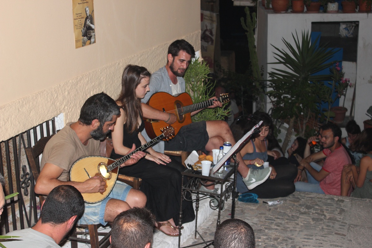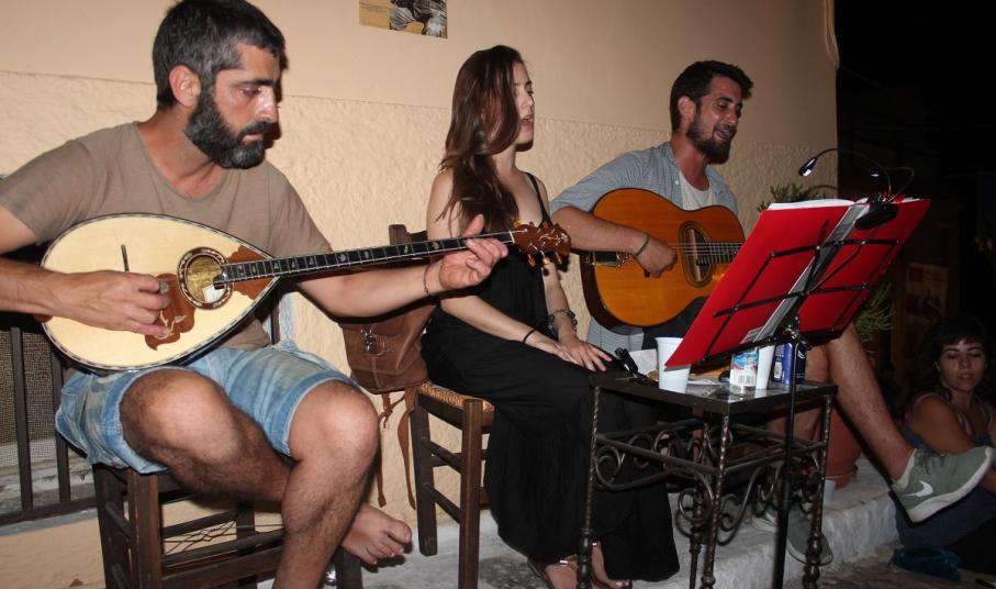 Στο πλαίσιο των πολιτιστικών εκδηλώσεων του δήμου, το τριμελές μουσικό σχήμα των Μάρκου Βαρθαλίτη (μπουζούκι-φωνή), Ιωάννας Μηνιάδη (φωνή) και Κωνσταντίνου Καρακατσάνη (κιθάρα, φωνή) ζέστανε ακόμη περισσότερο τη βραδιά, χαρίζοντας σκοπούς και μελωδίες που όλοι έχουμε ψιθυρίσει, τραγουδήσει, αγαπήσει.
