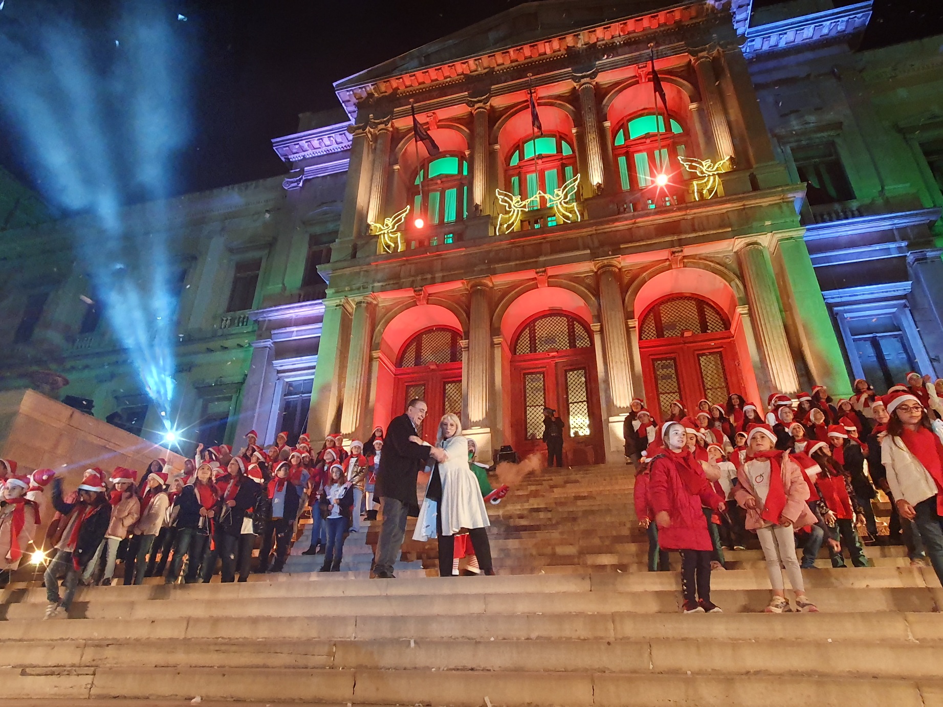 Με μία φαντασμαγορική γιορτή γεμάτη μουσική και με πλήθος κόσμου να συμμετέχει, φωταγωγήθηκε το χριστουγεννιάτικο δέντρο και σήμανε η έναρξη της εορταστικής περιόδου για τη Σύρο. Όλοι μαζί μέτρησαν αντίστροφα και φώτισε η πλατεία Μιαούλη και το Δημαρχείο. Η παιδική χορωδία της ορχήστρας των Κυκλάδων γέμισε μελωδίες την εκδήλωση και ο Άγιος Βασίλης έδωσε ξεχωριστό χρώμα στην γιορτή. Χαιρετισμό απηύθυναν στον κόσμο η Αντιδήμαρχος Πολιτισμού, Αλίκη Λεονταρίτη και ο Δήμαρχος Σύρου, Νίκος Λειβαδάρας.