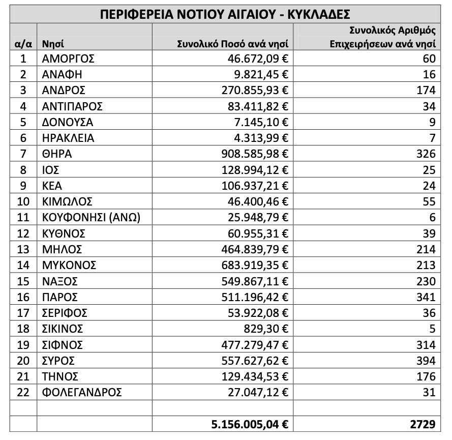 Καθοριστικές οι ενέργειες της Κατερίνας Μονογυιού για την καταβολή του Μεταφορικού Ισοδύναμου ύψους 30 εκ. ευρώ σε 134.705 νησιώτες και 10.075 νησιωτικές επιχειρήσεις Την Τετάρτη, 28 Δεκεμβρίου, ξεκινά και μέχρι το τέλος του χρόνου θα έχει ολοκληρωθεί η πίστωση των λογαριασμών πολιτών και επιχειρήσεων – δικαιούχων του Μεταφορικού Ισοδύναμου με 30 εκ. ευρώ, από τα οποία 22,9 εκ. αφορούν 10.075 νησιωτικές επιχειρήσεις και 7,1 εκ. 134.705 κατοίκους των νησιών. Η εκταμίευση του Μεταφορικού Ισοδύναμου για τις νησιωτικές επιχειρήσεις αφορά φορτωτικές και μεταφορικές δαπάνες: α) 429 επιχειρήσεων του δείγματος ελέγχου του Α εξαμήνου του 2021 β) 465 επιχειρήσεων του δείγματος ελέγχου του Β εξαμήνου του 2021 γ) 9.181 επιχειρήσεων εκτός δείγματος ελέγχου του Β εξαμήνου 2021. Για τους πολίτες αφορά το διάστημα έως και 28/4/2022. Παράλληλα, προχωρούν οι διαδικασίες ώστε έως το τέλος Ιανουαρίου του 2023 να προχωρήσει η πληρωμή επιβατών για το χρονικό διάστημα από 29/4/2022 έως 30/9/2022, καθώς και πληρωμές πολιτών και επιχειρήσεων για το σκέλος των καυσίμων του έτους 2022. Το μέτρο του Μεταφορικού Ισοδύναμου έχει ενταχθεί πλέον στο Τομεακό Πρόγραμμα Ανάπτυξης 2021- 2025 και έχουν γίνει οι απαραίτητες ενέργειες για την εξασφάλιση της ροής πληρωμών και την ένταξη του σε χρηματοδοτικά ευρωπαϊκά προγράμματα, ενώ ταυτόχρονα, λαμβάνεται μέριμνα για τη διαρκή αξιολόγηση και βελτίωση της αποτελεσματικότητας του μέτρου προκειμένου να έχει ακόμη μεγαλύτερο θετικό αντίκτυπο στις νησιωτικές κοινωνίες.  Αξίζει να σημειώσουμε ότι το 2018, έτος αρχικής εφαρμογής του μέτρου, το Υπουργείο κατέβαλε 2,2 εκ ευρώ, το 2019 κατέβαλε 28,6 εκ ευρώ, το 2020, κατέβαλε 49,4 εκ ευρώ, το 2021 κατέβαλε 25,6 εκ ευρώ και το 2022 θα φτάσει 71,8 εκ ευρώ. Η βουλευτής Κυκλάδων της Νέας Δημοκρατίας κ. Κατερίνα Μονογυιού δήλωσε:  «Το τελευταίο διάστημα βρισκόμουν σε διαρκή επικοινωνία με την Γενική Γραμματεία Αιγαίου και Νησιωτικής Πολιτικής για το ζήτημα της καταβολής του Μεταφορικού Ισοδύναμου σε πολίτες και επιχειρήσεις, ενός δίκαιου μέτρου που διαδραματίζει καθοριστικό ρόλο στην καθημερινότητα των νησιωτών. Η έγκαιρη καταβολή του Μεταφορικού Ισοδυνάμου και η συνέχιση αυτού του απαραίτητου μέτρου υπήρξε θέμα συζήτησης σε διαδοχικές συναντήσεις που έχω πραγματοποιήσει με τον Υπουργό κ. Γιάννη Πλακιωτάκη και με τον Γενικό Γραμματέα κ. Μανώλη Κουτουλάκη. Η Κυβέρνηση αντιλαμβάνεται πλήρως τις πληθωριστικές πιέσεις που δοκιμάζουν την αγοραστική δύναμη των πολιτών και για αυτό τον λόγο το Υπουργείο καταβάλει 71,8 εκ ευρώ για το μέτρο του Μεταφορικού Ισοδύναμου για το 2022, ποσό σχεδόν τριπλάσιο από πέρυσι. Οι κυβερνητικές πολιτικές για τη στήριξη της νησιωτικότητας εκφράζονται σε βάθος, έκταση και ποσότητα πόρων καθώς και με εφαρμογή στοχευμένων πολιτικών. Θα ήθελα να ευχαριστήσω τον Υπουργό Ναυτιλίας και Νησιωτικής Πολιτικής κ. Γιάννη Πλακιωτάκη και τον Γενικό Γραμματέα Αιγαίου και Νησιωτικής Πολιτικής κ. Μανώλη Κουτουλάκη για τη διαρκή στήριξη της νησιωτικότητας και το ενδιαφέρον τους για τις Κυκλάδες μας.» Στην φωτό, ο πίνακας των συνολικών στοιχείων πληρωμής Μεταφορικού Ισοδύναμου που αφορούν σε επιχειρήσεις των Κυκλάδων εντός δείγματος Ελέγχου Α' Εξαμήνου 2021 καθώς και εντός και εκτός δείγματος ελέγχου Β' Εξαμήνου 2021.