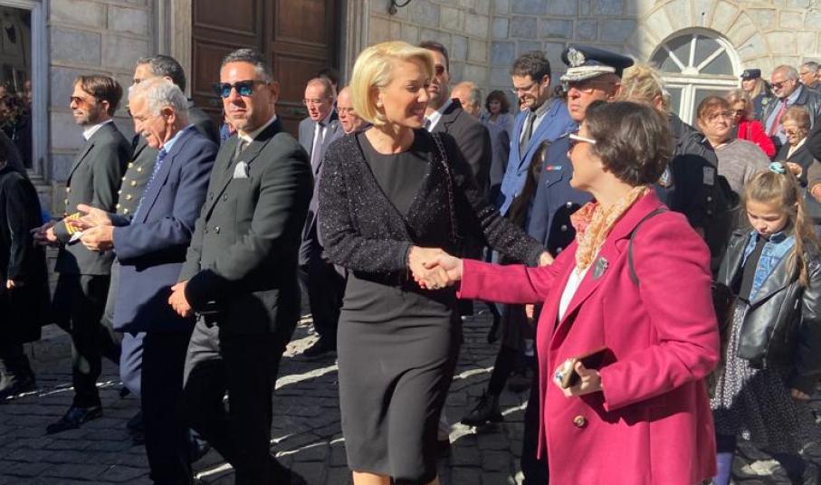 Η βουλευτής Κυκλάδων της Νέας Δημοκρατίας κ. Κατερίνα Μονογυιού επισκέφτηκε τη Σύρο για να τιμήσει τον πολιούχου του νησιού, Άγιο Νικόλαο. Η Κατερίνα Μονογιυού παρευρέθηκε στις εορταστικές εκδηλώσεις ως εκπρόσωπος της Νέας Δημοκρατίας και στην Τρισαρχιερατική Θεία Λειτουργία, που πραγματοποιήθηκε προεξάρχοντος του Σεβασμιωτάτου Μητροπολίτου Βέροιας κ. Παντελεήμονος και συνιεργούντων των Σεβασμιωτάτων Μητροπολιτών Κηφισιάς κ. Κυρίλου και Σύρου κ. Δωρόθεου Β'.
