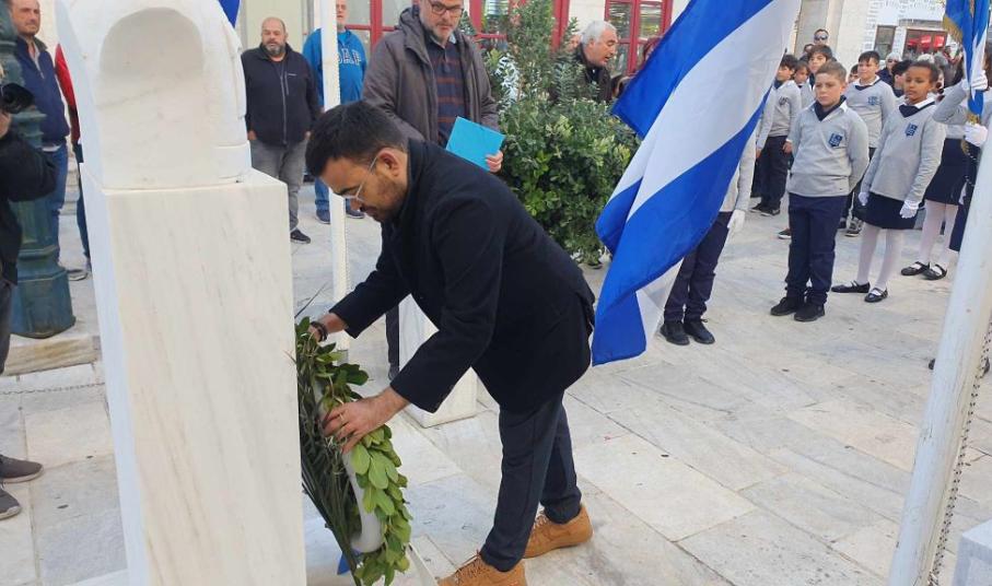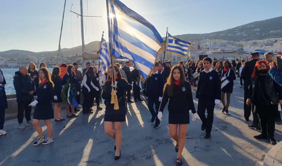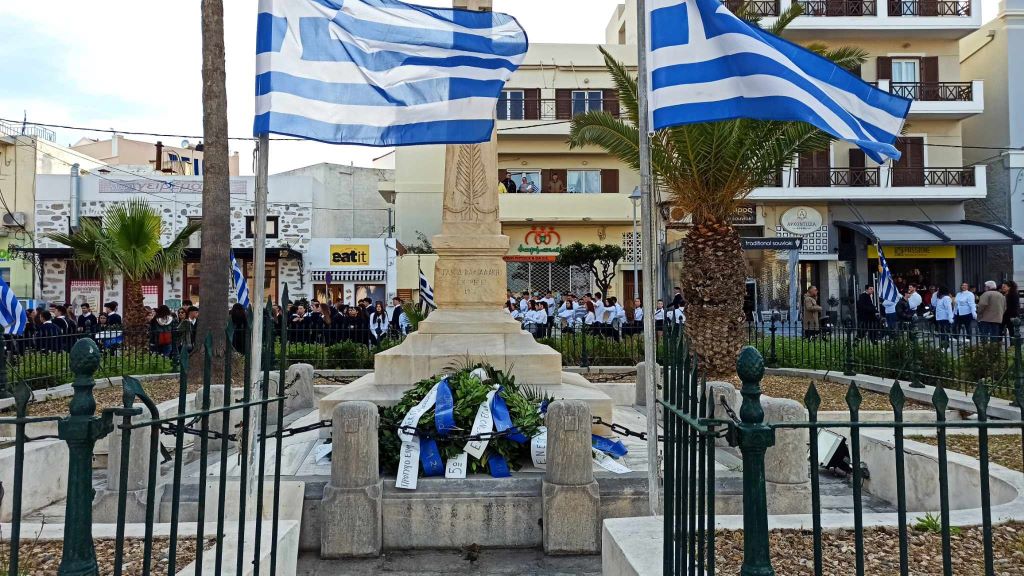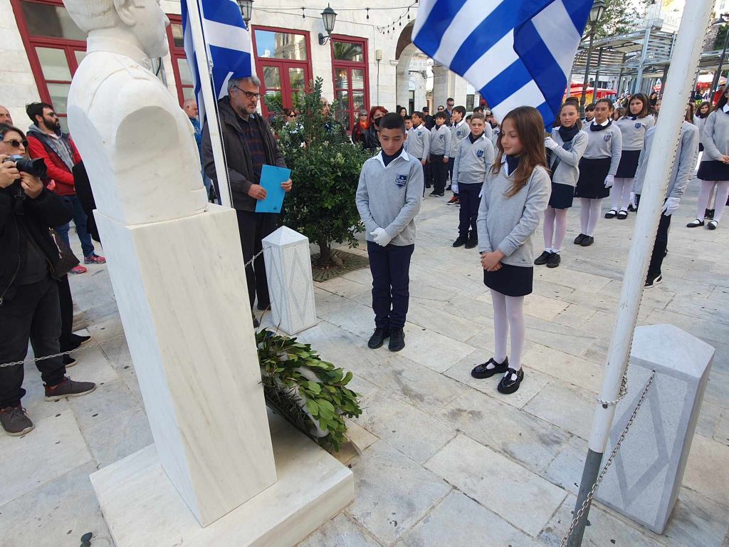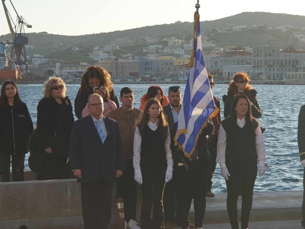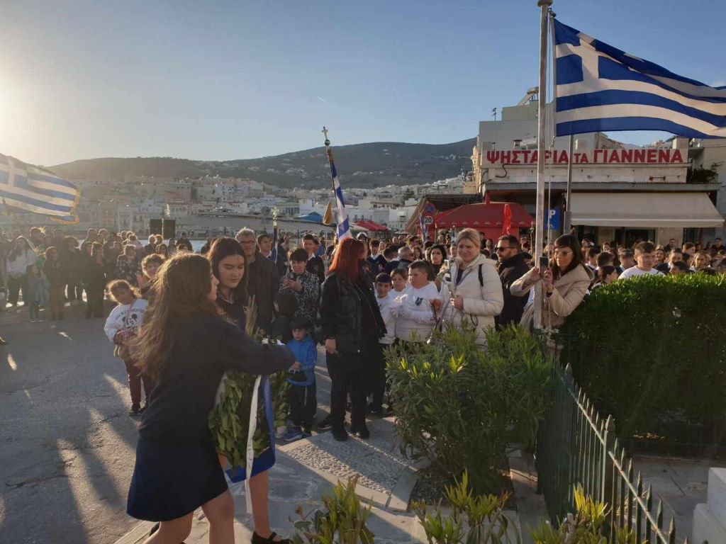 Νέοι και νέες, παρουσία του αντιπεριφερειάρχη Κυκλάδων, Γιώργου Λεονταρίτη, του δημάρχου Σύρου-Ερμούπολης Αλέξη Αθανασίου, του εντεταλμένου δημοτικού συμβούλου του γραφείου Παιδείας, Ιωσήφ Ρούσσου και μελών της δημοτικής αρχής, κατέθεσαν στεφάνια στα μνημεία της Ερμούπολης, αποδίδοντας τιμή στον αγώνα των προγόνων μας.