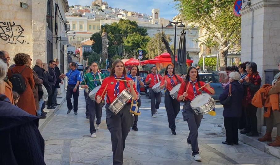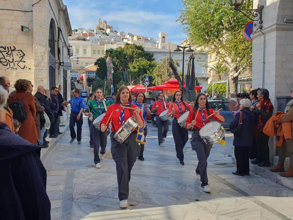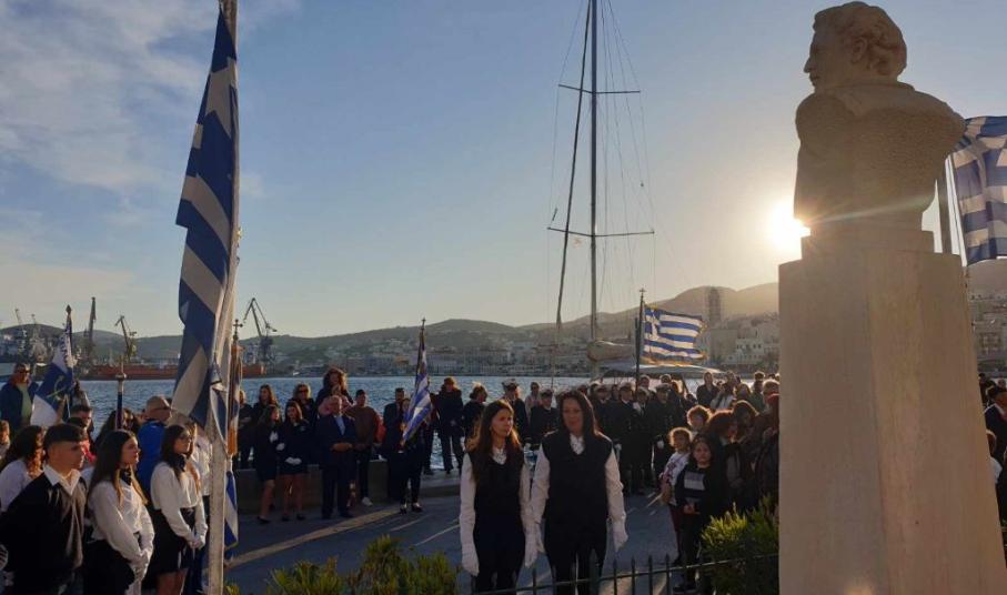Την επέτειο της 25ης Μαρτίου τίμησαν σήμερα το απόγευμα οι μαθητές, οι σπουδαστές και οι πρόσκοποι της Σύρου, συμμετέχοντας στη στεφάνωση για την εθνική επέτειο.