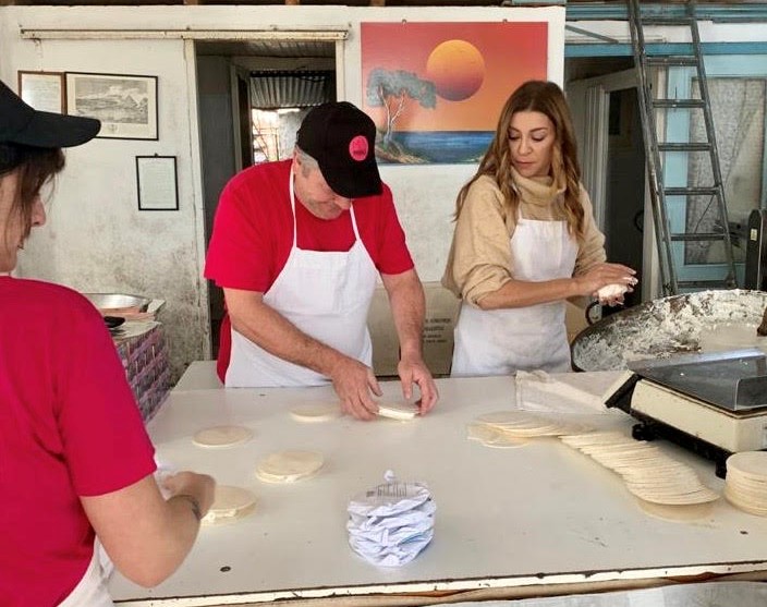 Και αφού γλυκάναμε την ψυχή μας, αφεθήκαμε σε μια άλλη πολύ γλυκιά εμπειρία, χαρακτηριστική του νησιού. Φτιάξαμε χαλβαδόπιτες και μάθαμε τα μυστικά που κάνουν το Συριανό λουκούμι διάσημο και αξεπέραστο. Νεράκι, ζάχαρη και κορν φλάουρ. Άλλο ψήσιμο το χειμώνα, άλλο ψήσιμο το καλοκαίρι. Άλλο στο βοριά, άλλο στο νοτιά. Και υψηλή θερμοκρασία, για να βγάλει το λουκούμι το θυμό του!