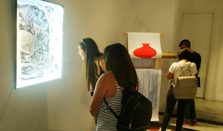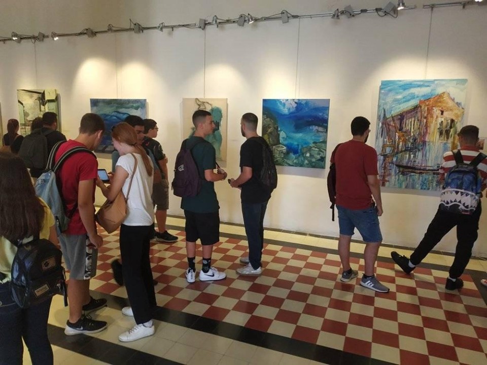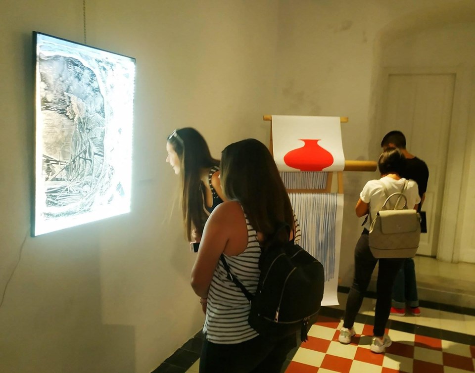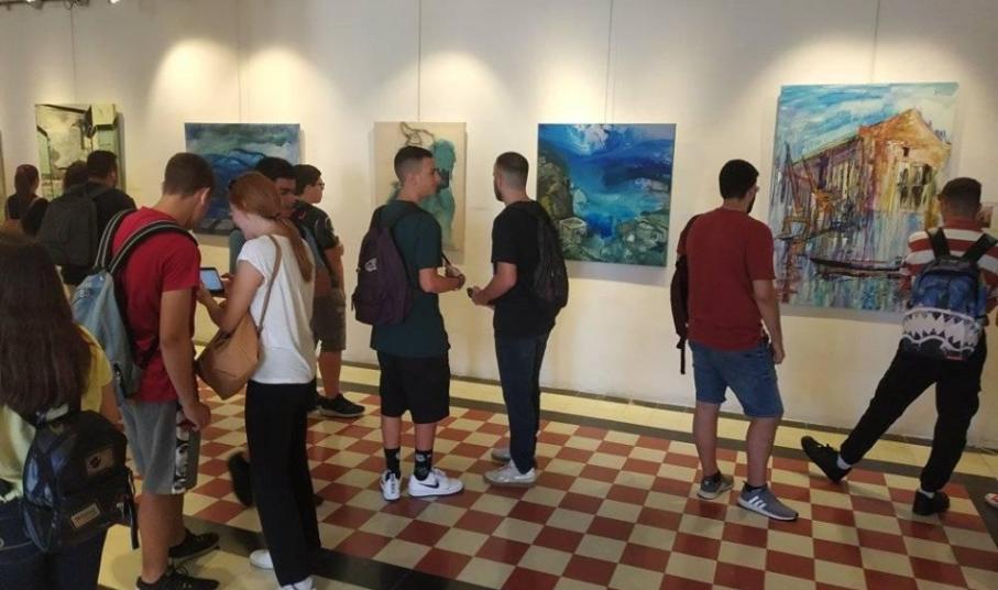 Τους φοιτητές υποδέχτηκε και ξενάγησε η επιμελήτρια της έκθεσης και διδάσκουσα στο Τμήμα, Αγγελική Μπρισνόβαλη, η οποία συζήτησε μαζί τους για το εύρος της Τέχνης, τα υλικά και τις τεχνολογίες που χρησιμοποιούνται σήμερα από τους εικαστικούς, καθώς και για τα μηνύματα που εκφράζονται μέσα από τον σχεδιασμό και την πράξη.