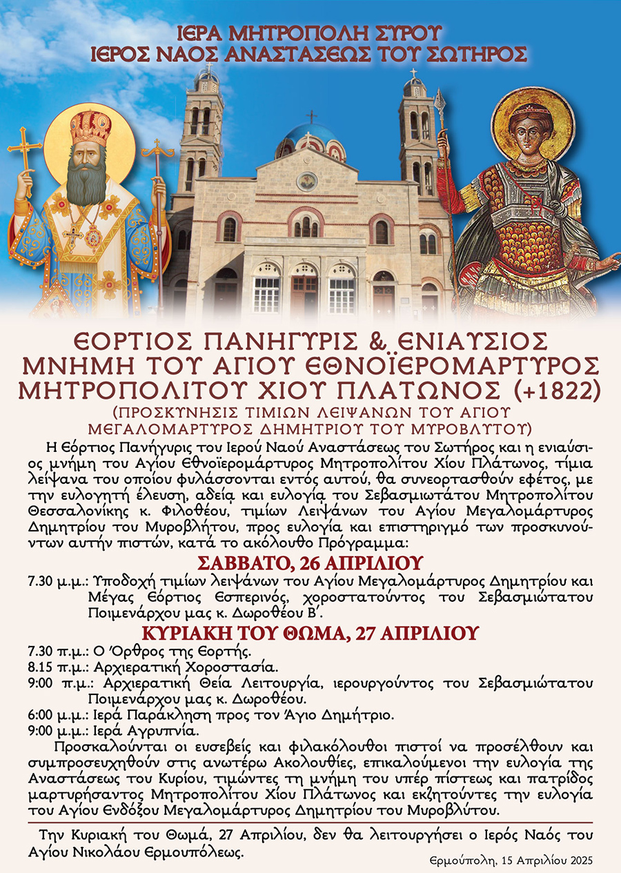 Ιερός Ναός Αναστάσεως λείψανα Αγίου Δημητρίου 2025