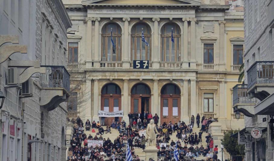 Το ιστορικό κέντρο της Ερμούπολης και συγκεκριμένα, η πλατεία Μιαούλη, καθώς όμως και η οδός Ελ. Βενιζέλου, όπως και οι δρόμοι περιμετρικά του Δημαρχιακού Μεγάρου “πλημμύρισαν” από φωνές βαθιά συγκινημένες για το τραγικό δυστύχημα που στέρησε τη ζωή σε 57 πολίτες, που στην πλειοψηφία τους ήταν νέοι και φοιτητές.