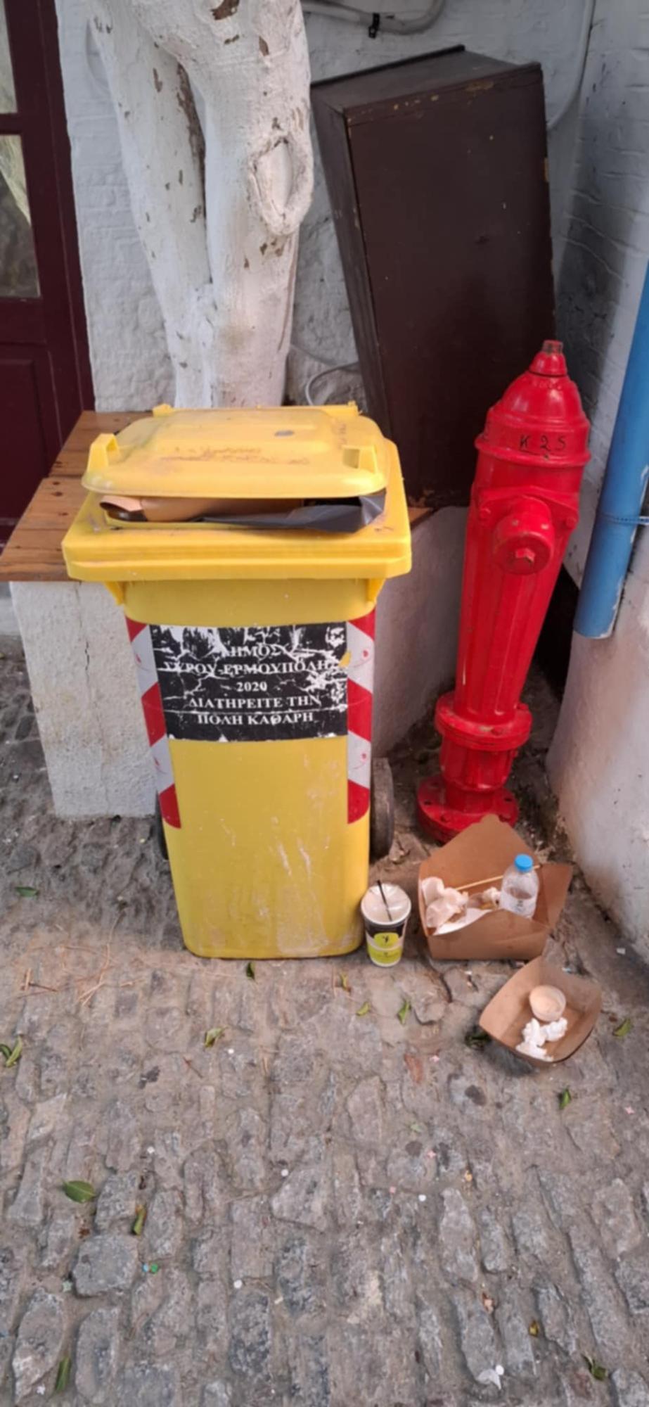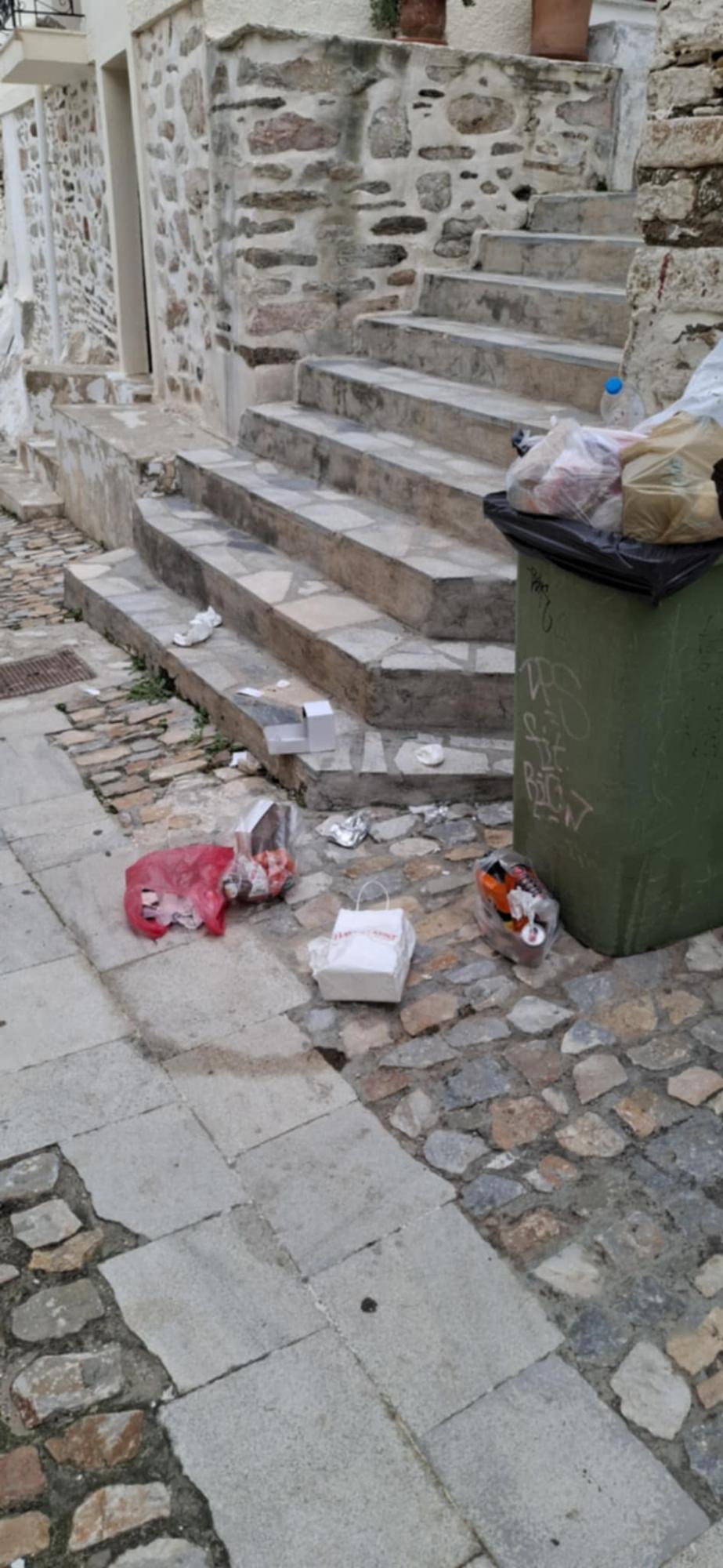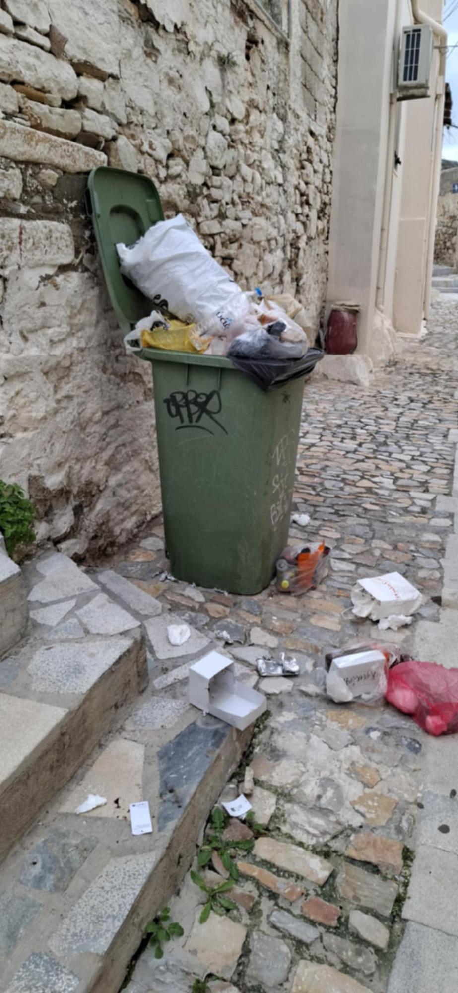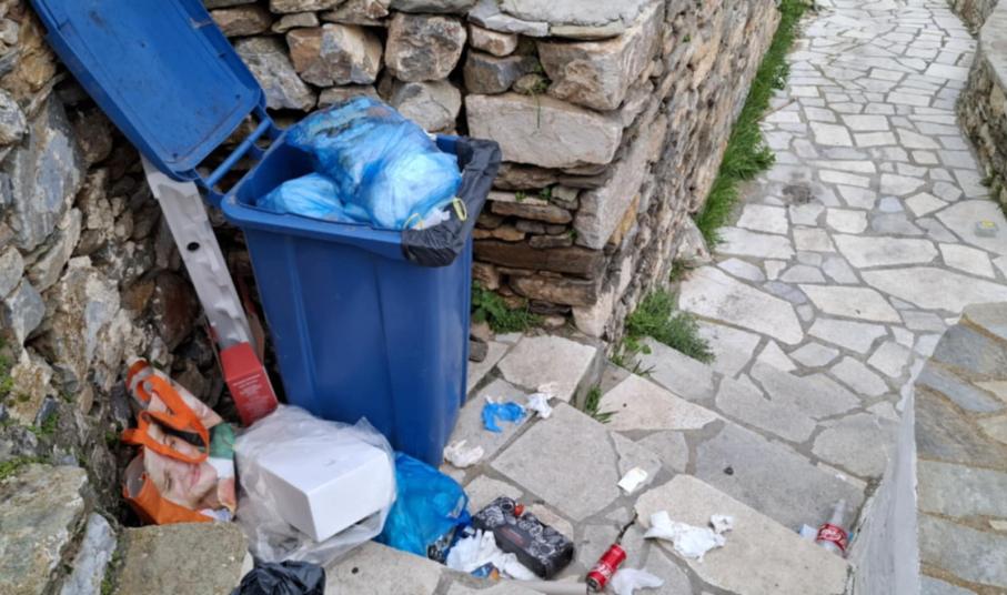 Αρνητικές εικόνες καταγράφονται στον μεσαιωνικό οικισμό της Άνω Σύρου, καθώς προφανώς ασυνείδητοι πετούν και σκορπίζουν απορρίμματα, πλαστικά, συσκευασίες ακόμη και τρόφιμα, χύμα στους μικρούς κάδους, ή και συστηματικά – δυστυχώς -, έξω από αυτούς.