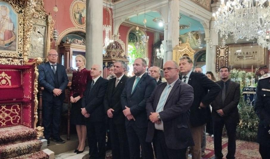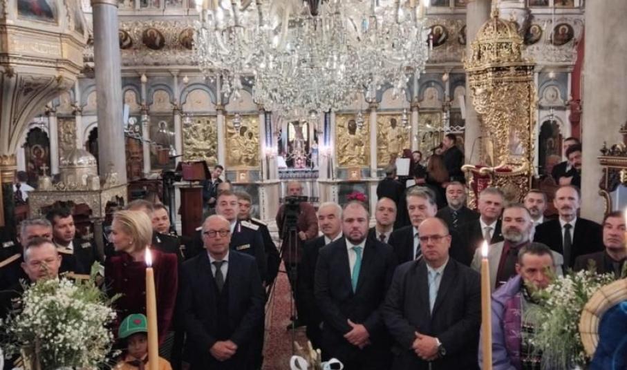 αντιπεριφερειάρχης Κυκλάδων, Γιώργος Λεονταρίτης, ο δήμαρχος Σύρου-Ερμούπολης, Αλέξης Αθανασίου, καθώς επίσης σύσσωμες οι αρχές και οι φορείς του τόπου, όπως και εκπρόσωποι των Ενόπλων Δυνάμεων και των Σωμάτων Ασφαλείας.