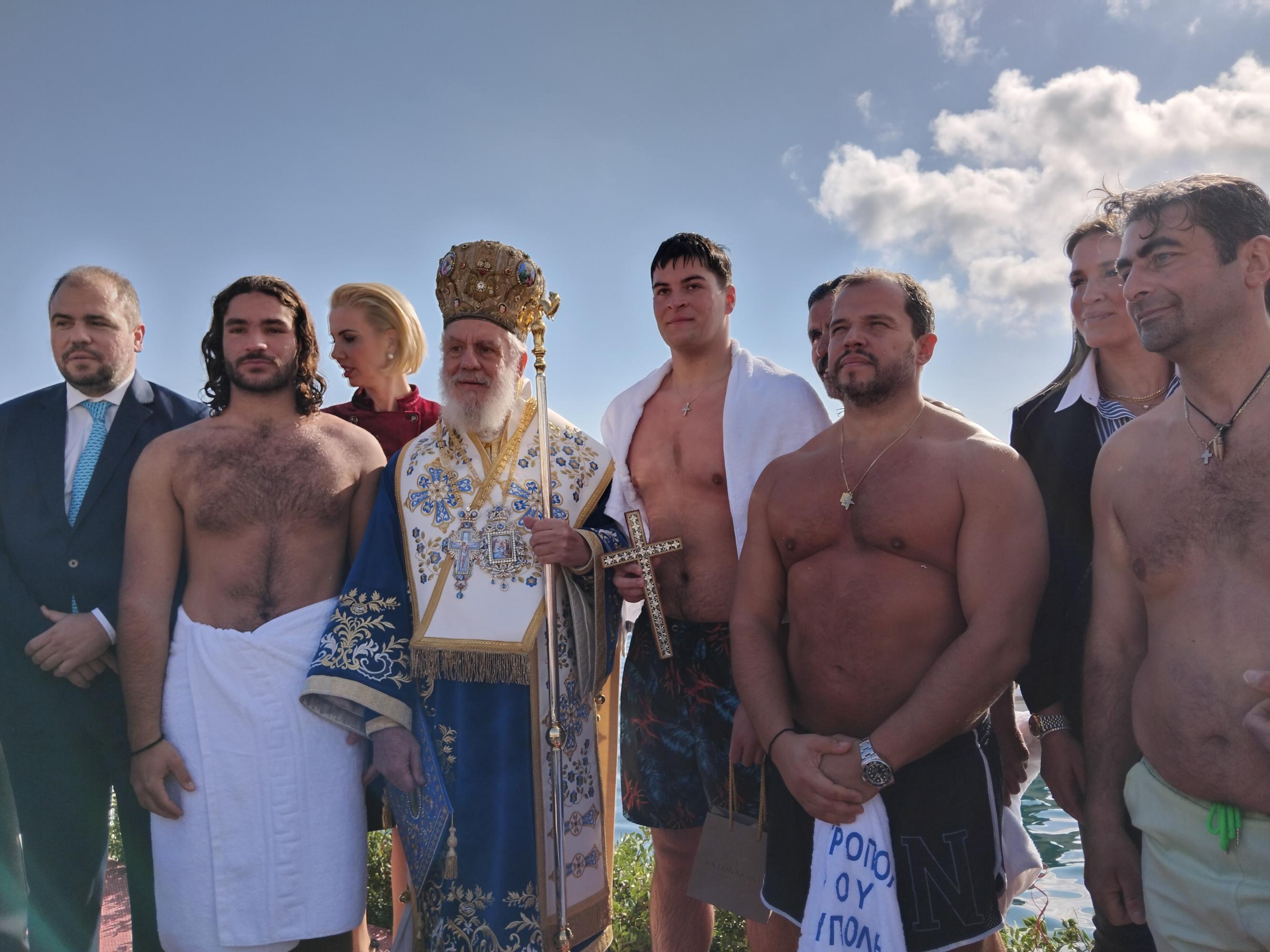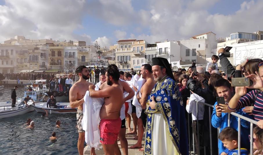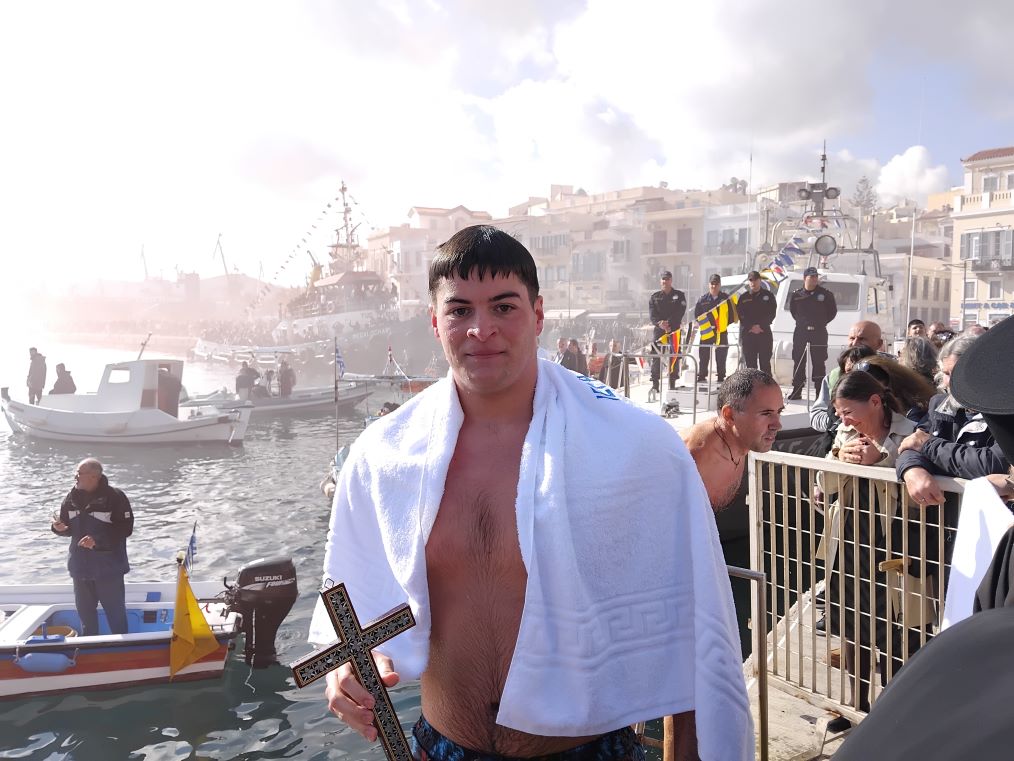 Δεκάδες ήταν οι παράτολμοι κολυμβητές που βούτηξαν στα παγωμένα νερά του λιμανιού, με τον Βασίλη Κορφιάτη να καταφέρνει να ανασύρει τον Σταυρό από τη θάλασσα, δηλώνοντας αμέσως μετά την μεγάλη χαρά και ικανοποίησή του, επισημαίνοντας ότι για πρώτη φορά συμμετείχε σε αυτή τον λαμπρό εορτασμό.