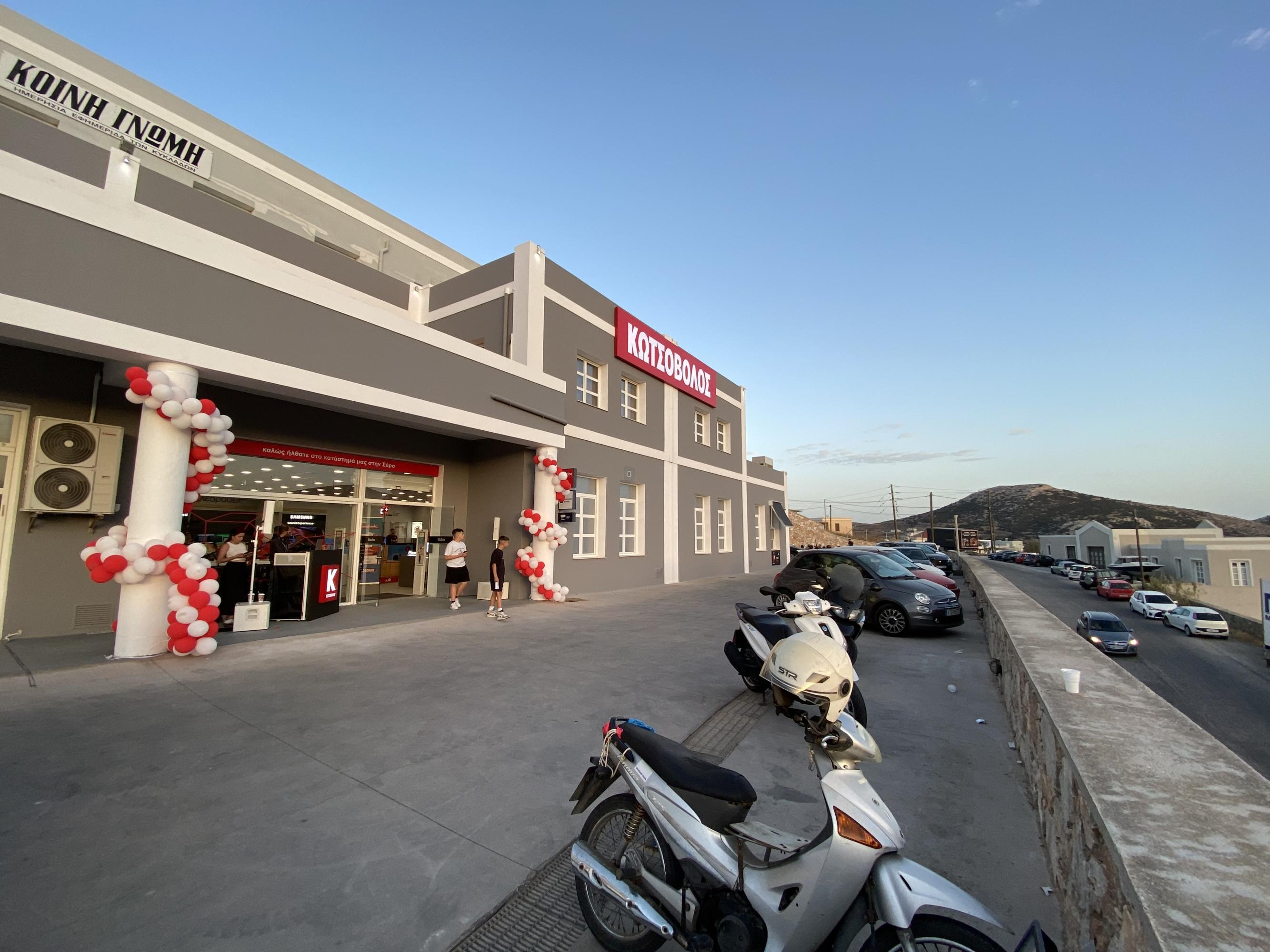 Το ολοκαίνουργιο κατάστημα της εταιρείας, επί της οδού Αεροδρομίου 22 , στο Κάτω Μάννα, δίπλα από τις εγκαταστάσεις της “Τυποκυκλαδικής”, έρχεται για να προσφέρει μία μοναδική αγοραστική εμπειρία, τόσο στους κατοίκους της Σύρου, όσο και στους επισκέπτες του νησιού.