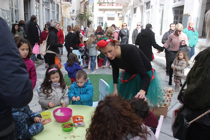 Εκπλήξεις περίμεναν τους επισκέπτες τόσο στην οδό Σταματίου Πρωίου, όσο και στον πεζόδρομο της Πρωτοπαπαδάκη και Θυμάτων Σπερχειού όπου έλαβαν χώρα πολλές δημιουργικές δράσεις για τα παιδιά. Οι μικροί φίλοι της Σύρου είχαν την ευκαιρία να παίξουν, να κατασκευάσουν, να χορέψουν αλλά και να βάψουν τα πρόσωπά τους με πρωτότυπα σχέδια στο κλίμα των εορτών.