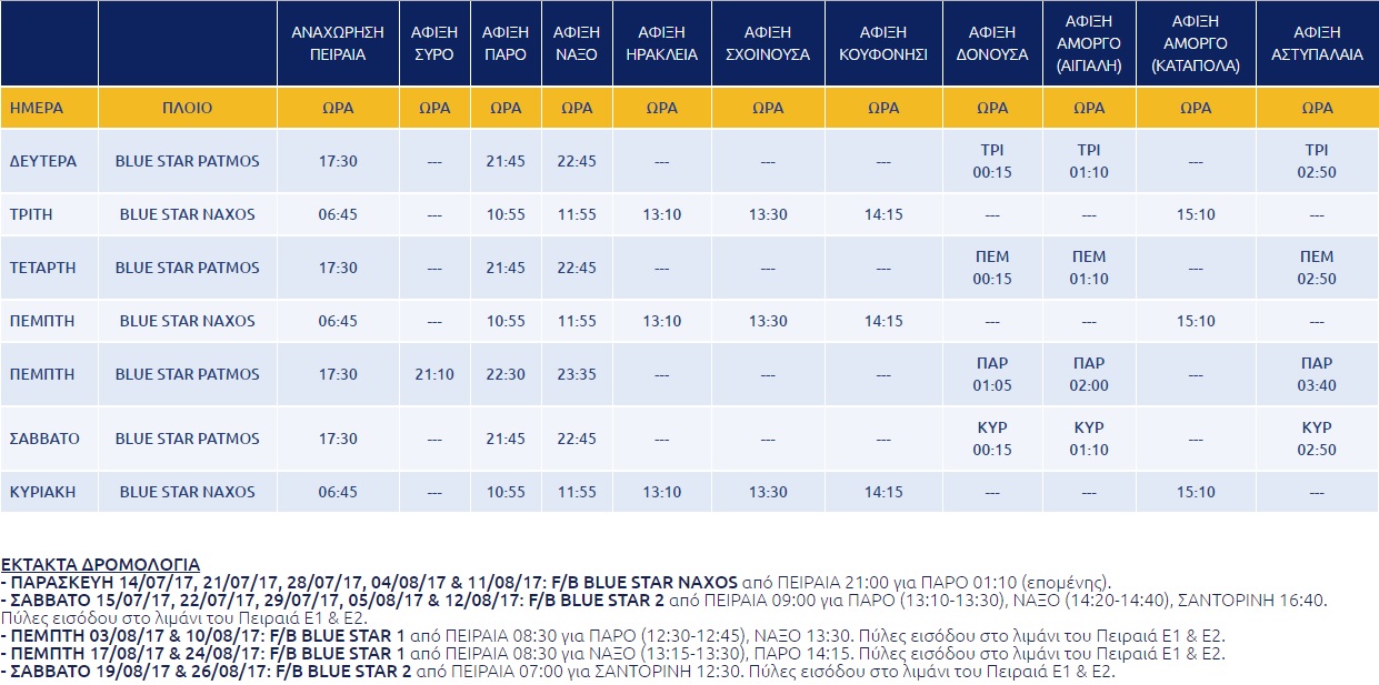 Τη σύνδεση της Πάρου της Νάξου, των Μικρών Κυκλάδων και της Αμοργού, με ημερήσιο δρομολόγιο, αναλαμβάνει, ενόψει θερινής περιόδου η Blue Star Ferries, με πρωινά δρομολόγια, παράλληλα με τα συνηθισμένα βραδινά και μεταμεσονύκτια, προκειμένου να εξυπηρετήσει τις ανάγκες των κατοίκων και επισκεπτών κυρίως των μικρότερων νησιών.