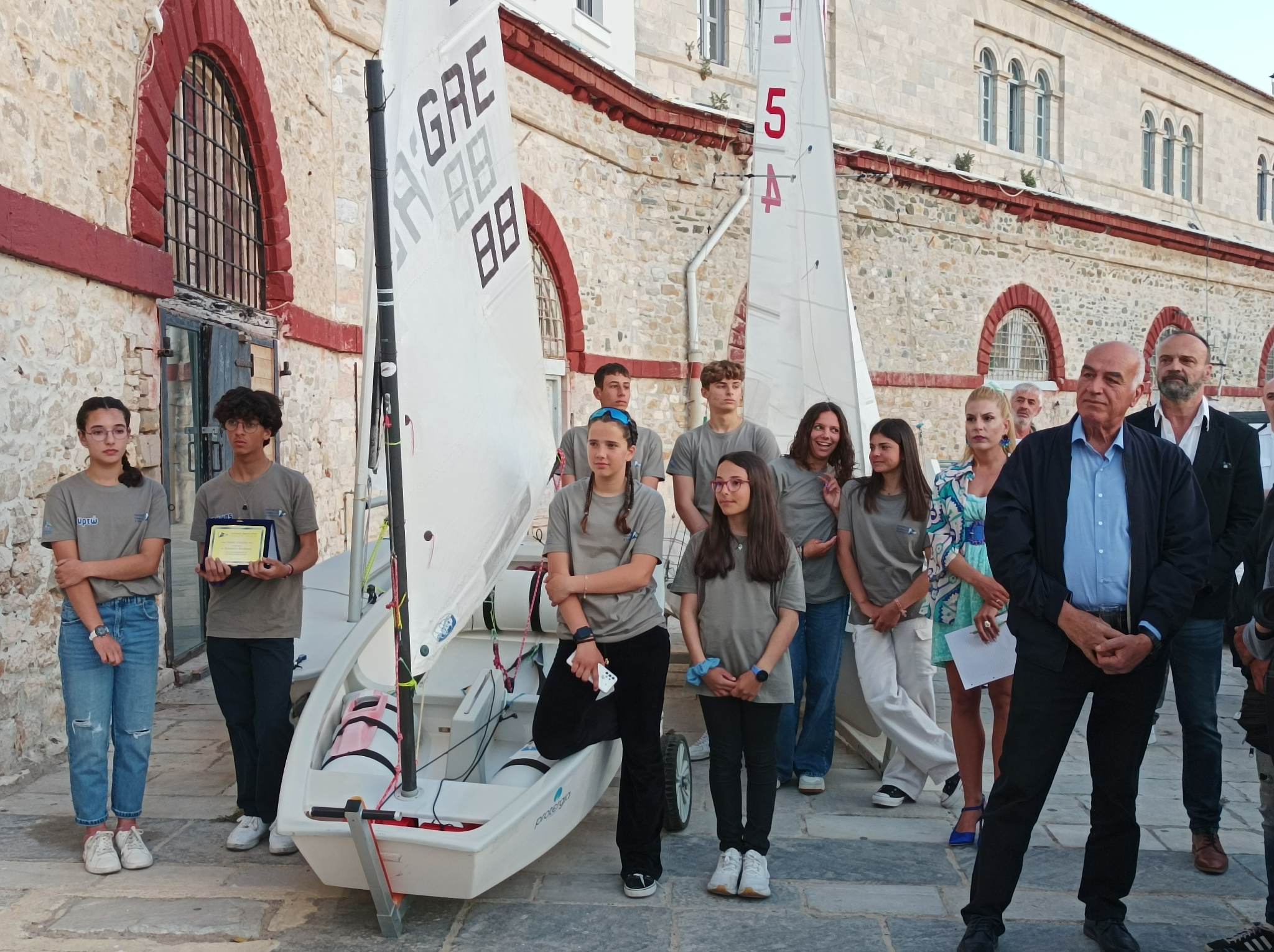 «Εδώ στον Νεώσοικο που μαζευτήκαμε, ξεκίνησα κι εγώ την ενασχόλησή μου με την ιστιοπλοΐα το 1979-80. Ενθουσιάστηκα με την επαφή μου με το νερό και ο κ. Σταμάτης Γρυπάρης μίλησε με τους γονείς μου στη συνέχεια, λέγοντάς τους πως το παιδί πάει καλά και θα έπρεπε να συνεχίσω στο άθλημα αυτό. Όταν στη συνέχεια πήγαμε στην Αθήνα αποφάσισα να ασχοληθώ με την ιστιοπλοΐα και στα 15 χρόνια που ήμουν στον πρωταθλητισμό μου κέρδισα πάρα πολλές χαρές. Κατάφερα να κερδίσω Πανελλήνια πρωταθλήματα, Ευρωπαϊκές και παγκόσμιες συμμετοχές, αλλά και Ολυμπιάδες. Το πιο σημαντικό πράγμα που κέρδισα και προέκυψε μέσα από την ιστιοπλοΐα ήταν ο χαρακτήρας μου. Γιατί μέσα από την ιστιοπλοΐα μπορείς να διαμορφώσεις ένα ισχυρό χαρακτήρα. Μπορεί να έχεις συνεχώς κοντά σου, τους προπονητές σου, τους ψυχολόγους σου και όλο το τιμ από πίσω σου, όμως όταν μπαίνεις στο σκάφος σου είσαι εντελώς μόνος. Οπότε είναι μία προσομοίωση της ζωής, καθώς αλλάζουν τα κύματα, οι καιρικές συνθήκες, ο άνεμος, αλλάζουν γενικά τα πάντα όλες τις στιγμές. Έτσι, πρέπει από πολύ μικρή ηλικία όλες αυτές τις αλλαγές να προσπαθείς να τις καταλάβεις και αναλόγως να προσαρμοστείς, για να ανταπεξέλθεις στις δυσκολίες που θα βρεις μπροστά σου. Είναι ένα μάθημα ζωής καθώς θα πρέπει να αναλαμβάνεις στις ευθύνες σου συνεχώς για να μπορείς να ανταπεξέλθεις στα πάντα. Επίσης, μαθαίνεις πως τίποτα δεν μπορείς να κερδίσεις χωρίς σκληρή δουλειά, δεν υπάρχει περίπτωση να πας καλά στην ιστιοπλοΐα αν δεν κάνεις συνεχώς προπόνηση. Όλα αυτά εμένα μου έχτισαν τον δικό μου χαρακτήρα. Εμένα, αυτό είναι το μεγάλο μου ευχαριστώ στο άθλημα και ελπίζω με αυτή τη δωρεά που κάναμε τώρα, αλλά και σ’ αυτές που θα ακολουθήσουν στο μέλλον να μπορέσουν όλο και περισσότερα παιδιά να ασχοληθούν με την ιστιοπλοΐα, να την αγαπήσουν και βεβαίως να διακριθούν. Κλείνοντας, θέλω να σημειώσω εδώ, πως θυμάμαι τη δεκαετία του 1980 είχαμε στον όμιλο πολλά σκάφη, καθώς υπήρχαν 470, laser και πιστεύω σιγά – σιγά να μεγαλώσουμε τις κατηγορίες και θα βγουν και πάλι μεγάλοι πρωταθλητές από τον Όμιλο».