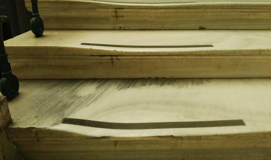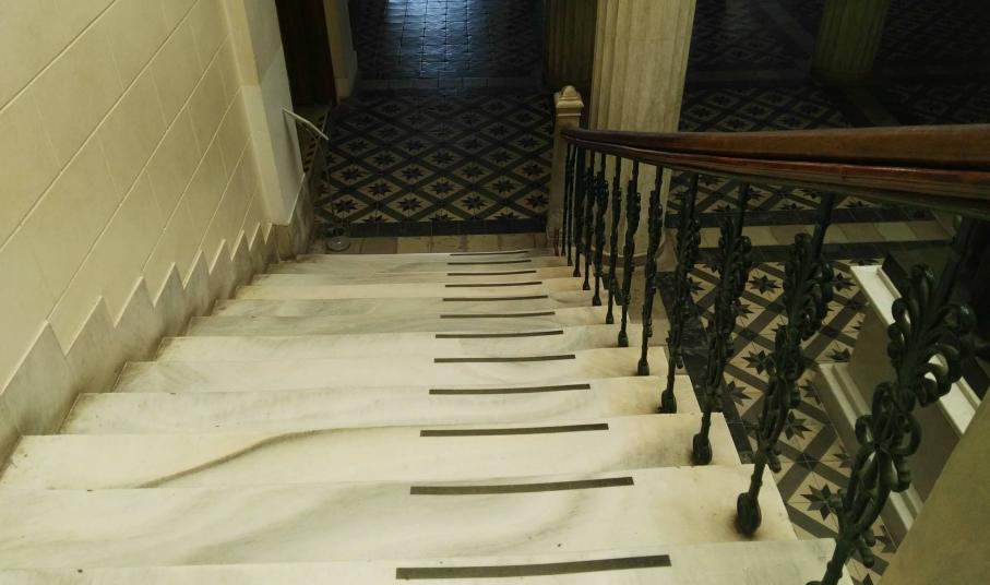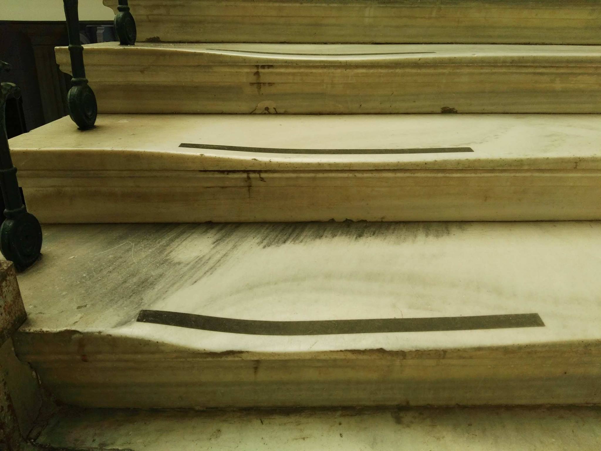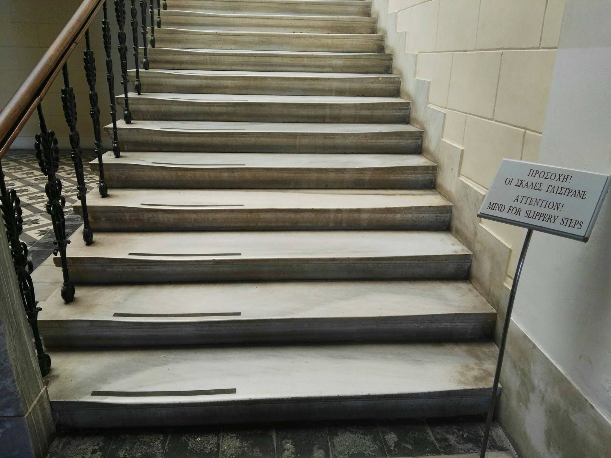 Πρέπει να σημειωθεί πως, η εν λόγω κλίμακα που χαρακτηρίζεται για την ιδιαίτερη τεχνοτροπία της και είναι σχεδόν μοναδική σε κτίρια της χώρας που δεν έχει βάση, δεν “τραυματίζεται” αισθητικά από την τοποθέτηση των αντιολισθητικών ταινιών, γεγονός πολύ σημαντικό.