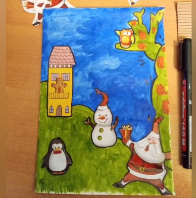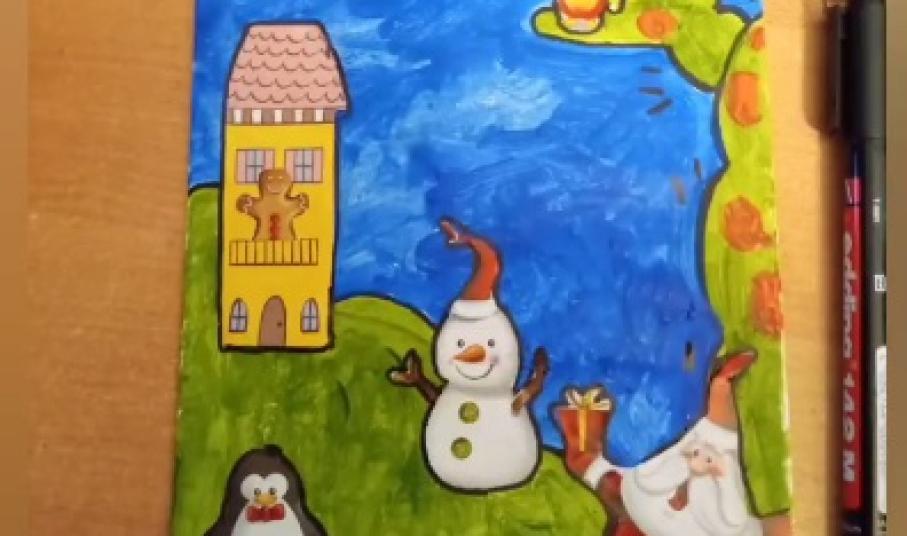Στο πρώτο μάθημα του εργαστηρίου, η Ματίνα Μάμαλη μας ταξίδεψε στην παράδοση της Χριστουγεννιάτικης κάρτας και μας έδειξε βήμα-βήμα πώς μπορούμε να φτιάξουμε τη δική μας κάρτα με μικτή τεχνική, ζωγραφική και κολλάζ. Στην έναρξη του μαθήματος, η εικαστικός μοιράστηκε με τα παιδιά πληροφορίες για την πρώτη εμφάνιση της χριστουγεννιάτικης κάρτας.