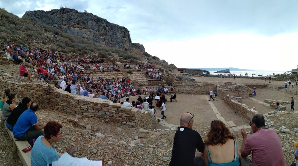 Με το τελευταίο φθινοπωρινό φως της μέρας, πλήθος κόσμου συνέρρευσε στο αρχαίο θέατρο και αποθέωσε την Καμεράτα που παρουσίασε έργα G. Puccini, W. A. Mozart, G. Holst, G. F. Händel και B. Bartók. Τη δεκαμελή ορχήστρα, υπό τη μουσική διεύθυνση του μαέστρου Γιώργου Παπαδόπουλου, συνόδεψε η σοπράνο Μυρσίνη Μαργαρίτη. Το κοινό μαγεύτηκε από τη Μικρή Νυχτερινή μουσική του Mozart και τους Ρουμάνικους χορούς του Μπάρτοκ και καταχειροκρότησε τη σοπράνο, τους εξαιρετικούς μουσικούς και τον σπουδαίο διευθυντή της ορχήστρας. Η Καμεράτα με αυτή τη μουσική παράσταση έφερε ξανά το κοινό σε αυτό το σπουδαίο αρχαίο θέατρο της Κέας, που στέκεται εκεί για να μας θυμίζει πόσο βαθιές στο χρόνο είναι οι ρίζες του πολιτισμού στη γη της Καρθαίας.