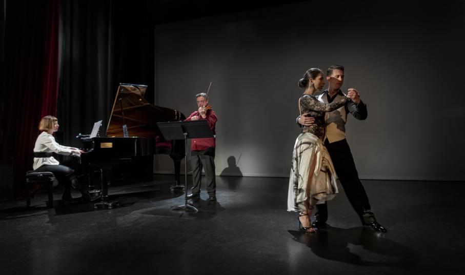 Η μοναδική μουσική του Astor Piazzola, μέσα από εκπληκτικές διασκευές για βιολί και πιάνο, πλημμύρισε την αίθουσα δημιουργώντας κλίμα συγκίνησης. Το ζευγάρι των χορευτών που πλαισίωσαν την παράσταση, ολοκλήρωσε με ξεχωριστό τρόπο τη βραδιά.