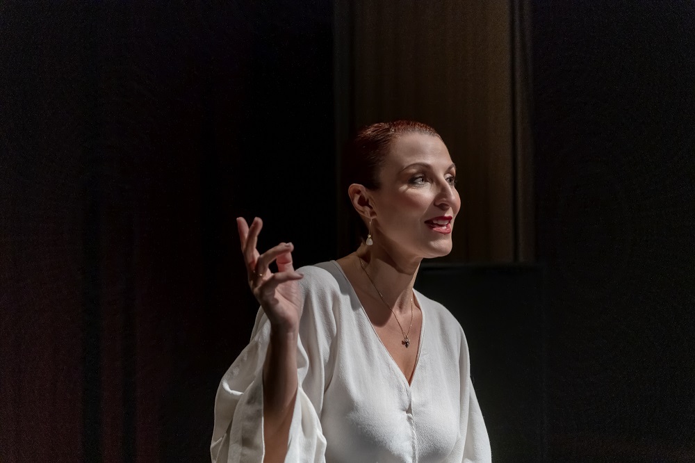 Η ηθοποιός Αιμιλία Βάλβη, έντυσε με ιδιαίτερο τρόπο την αφήγηση της παράστασης που, σε συνδυασμό με την προβολή οπτικοακουστικού υλικού, μύησαν το θεατή στον κόσμο του Tango.