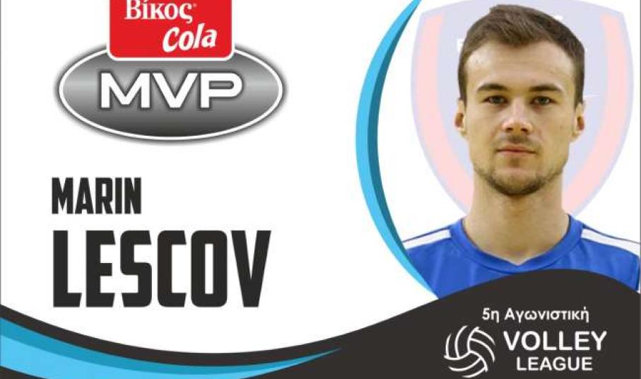 O Μολδαβός πασαδόρος του Α.Ο.Φοίνικα Σύρου Μαρίν Λέσκοφ αναδείχτηκε πολυτιμότερος αθλητής MVP Βίκος Cola της 5ης αγωνιστικής του πρωταθλήματος Volley League 2018-19.