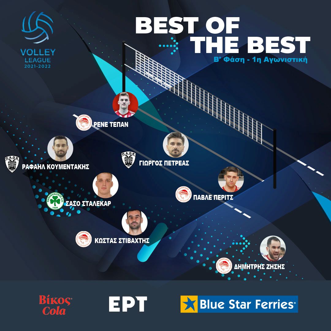 Ο Σέρβος ακραίος του Ολυμπιακού Πάβλε Πέριτς αναδείχτηκε MVP Βίκος Cola στην 1η αγωνιστική της B΄ φάσης του πρωταθλήματος Volley League 2021-22: