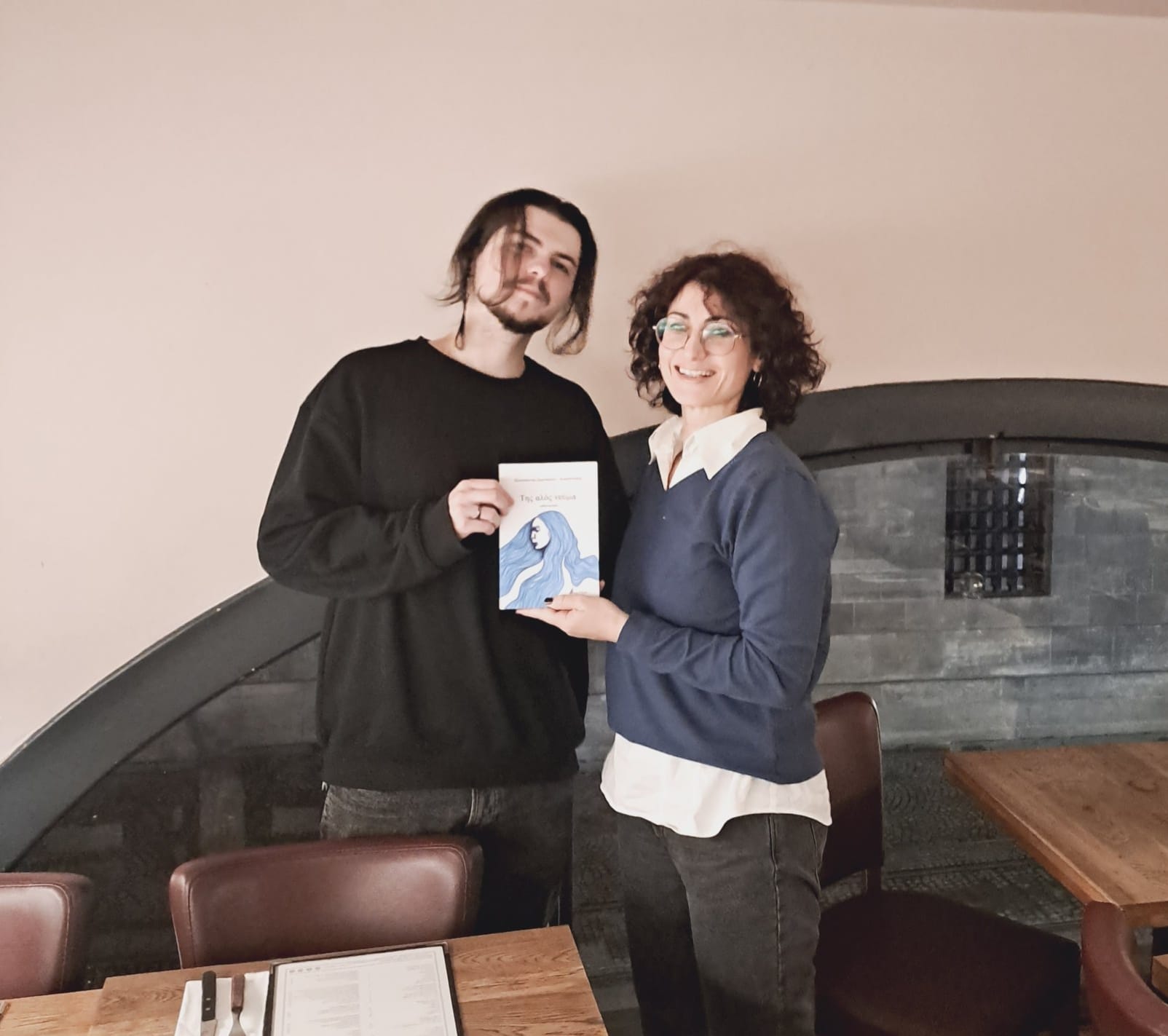 "Για μεγάλο διάστημα βρισκόμουν στην Ολλανδία, όπου εργάστηκα πάνω στο θέμα της ζωγραφικής. Επέστρεψα τον Μάρτιο στην Ελλάδα, καθώς αποφάσισα να ασχοληθώ πλέον επαγγελματικά με τη ζωγραφική. Με την επιστροφή μου λοιπόν στη χώρα και έχοντας μία πρώτη σειρά από έργα, κάποια από αυτά κοσμούν το τουριστικό γραφείο του Κώστα Γαβιώτη, δέχθηκα από τον ίδιο μία πρόταση να εκθέσω πίνακές μου στον επιβατικό σταθμό. Και έτσι και έγινε, καθώς ήταν μία καλή ευκαιρία μέσα από αυτή την έκθεση να κάνω το ξεκίνημα που επιθυμώ.Μέσα από αυτή τη συνεργασία μου με το Δήμο Σύρου-Ερμούπολης, είναι μία ευκαιρία να αποτίσω φόρο τιμής στη Σύρο, καθώς από αυτό το νησί ξεκινώ την επαγγελματική μου πορεία, αλλά και είναι ένα μέρος μου δέθηκα συναισθηματικά".