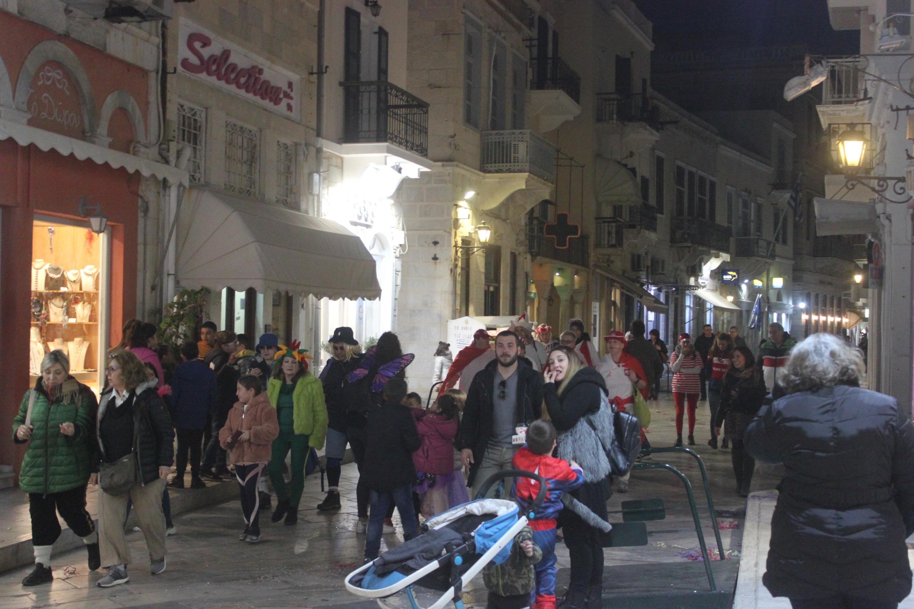 Στη συνέχεια, οι καρναβαλιστές σκορπίστηκαν στις επιχειρήσεις της παραλίας και γιόρτασαν με χορό, τραγούδι αλλά και την ελπίδα ότι η επόμενη χρονιά θα είναι πιο αισιόδοξη και πρόσφορη ώστε να πραγματοποιήσουν όσα είχαν σχεδιάσει φέτος. Ανάμεσα σε αυτούς που φόρεσαν στολές, αποκριάτικα αξεσουάρ και ξεχύθηκαν στο ιστορικό κέντρο ήταν και πολλοί Έλληνες και ξένοι επισκέπτες, οι οποίοι προτίμησαν το νησί της Σύρου είτε για μια μικρή «απόδραση», είτε για να γίνουν μέρος του Συριανού Καρναβαλιού «Γεώργιος Σουρής» 2020. Το κέφι του κόσμου διατηρήθηκε στα ύψη, αφού τόσο η μουσική, όσο και το ευχάριστο κλίμα που κυριαρχούσε σε κάθε καρναβαλική «γωνιά» παρέσυρε όσους βρέθηκαν το βράδυ της Κυριακής στην παραλιακή ζώνη της Ερμούπολης. Μεγάλες παρέες πιάνονταν από τους ώμους και χόρευαν μέσα και έξω στις επιχειρήσεις εστίασης, ακόμη και μέσα στη μέση του δρόμου, με την ανοχή, την υπομονή, αλλά και την κατανόηση των διερχόμενων οδηγών.