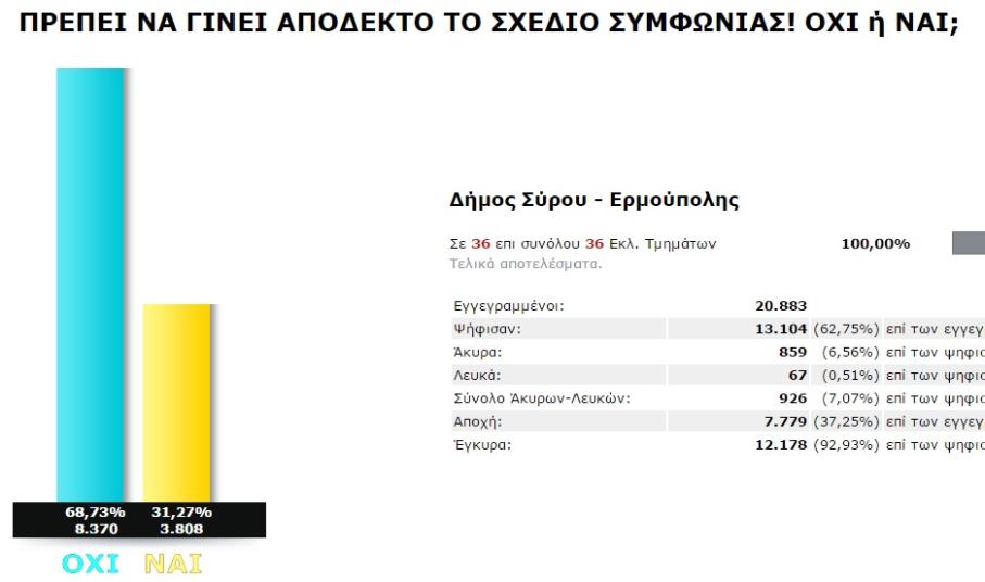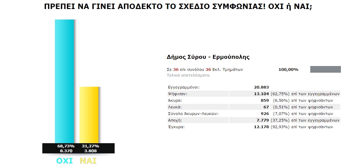 Σύρος: 68,73% ΟΧΙ, 31,27% ΝΑΙ