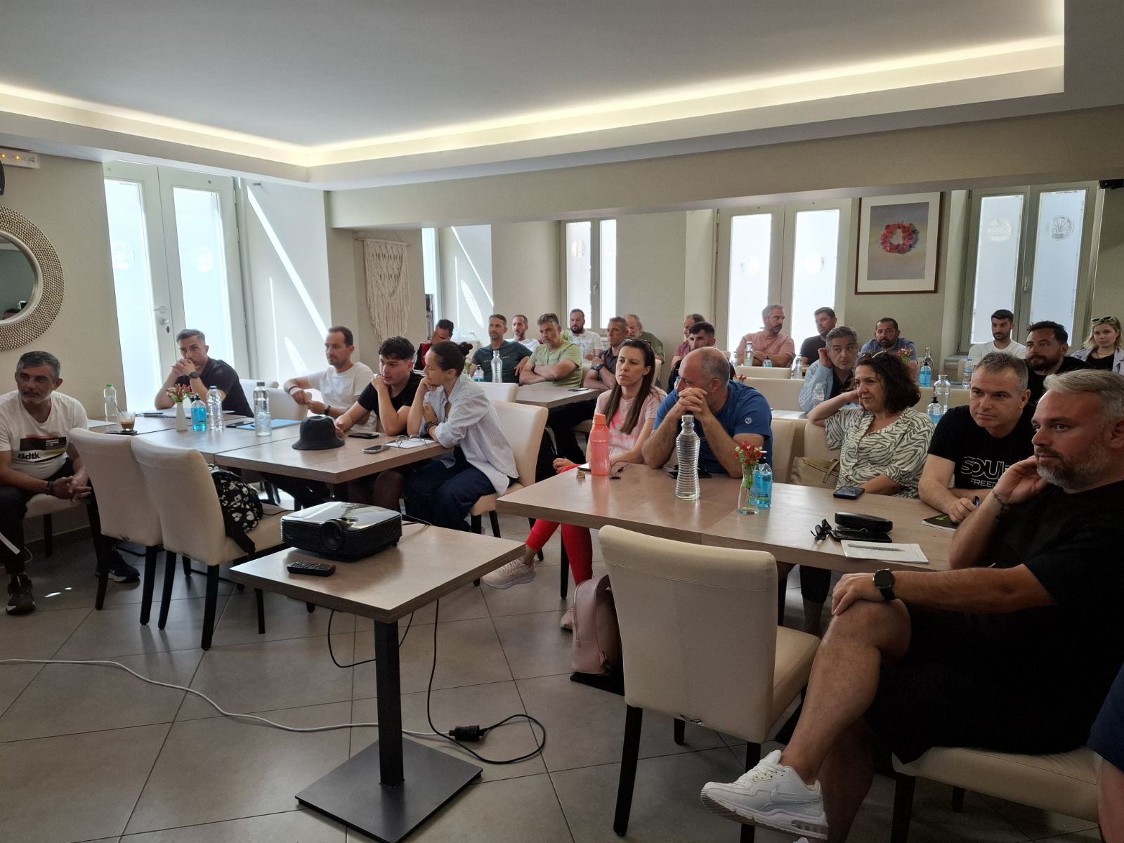 Η πρώτη συγκέντρωση πραγματοποιήθηκε σε γνωστό ξενοδοχείο της Ερμούπολης, όπου εκπαιδευτές και εκπαιδευόμενοι είχαν την ευκαιρία να γνωριστούν, αλλά και να μιλήσουν για τα μυστικά του ποδοσφαίρου. Το ενδιαφέρον και η… δίψα για μάθηση ήταν μεγάλη, καθώς άπαντες άκουγαν με μεγάλη προσοχή τον εκάστοτε ομιλητή.