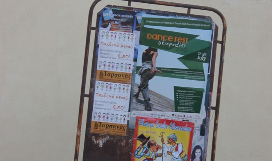 Οπτική ρύπανση συνιστούν οι σιδερένιοι πίνακες ανακοινώσεων σε πολλά σημεία δημόσιων χώρων εντός της Ερμούπολης, καθώς οι επιφάνειές τους έχουν “ντυθεί” με στρώματα από αφίσες, ανακοινώσεις κι ενημερωτικά φυλλάδια ετών... επάνω στα οποία προστίθενται κι άλλα σε καθημερινή βάση, διαμορφώνοντας μία συνολικότερη εικόνα αντιαισθητικού χαρακτήρα.