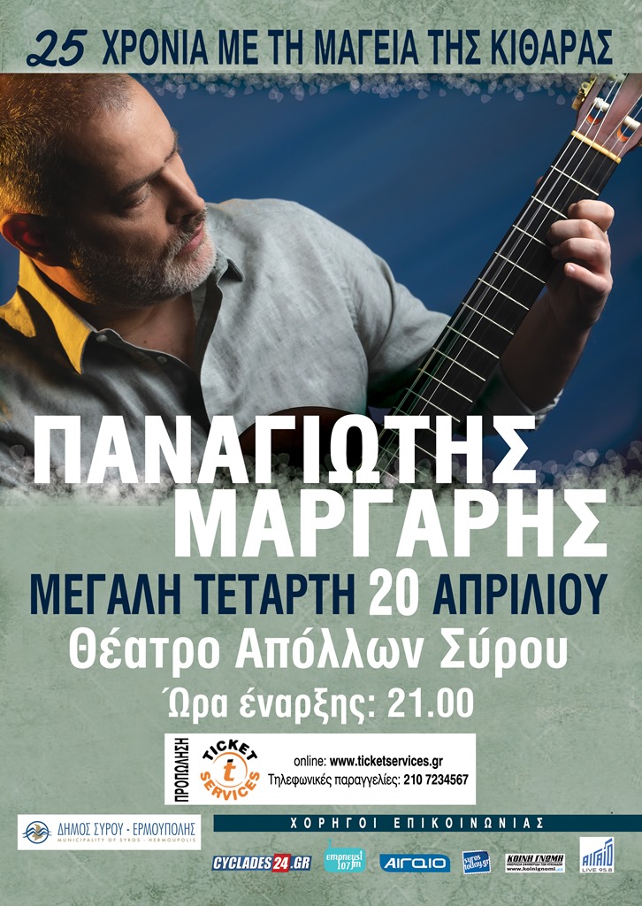 Ο διεθνούς φήμης κιθαρίστας και συνθέτης Παναγιώτης Μάργαρης, ταξιδεύει φέτος με την κιθάρα του παρουσιάζοντας μια επιλογή υπέροχων κομματιών από την πλούσια προσωπική του δισκογραφία.