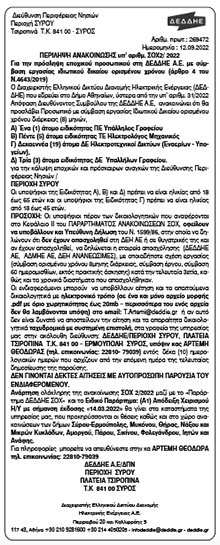 Περίληψη Ανακοίνωσης Υπ' αριθμ. ΣΟΧ2 /2022 από τη ΔΕΔΔΗΕ Τρίτη 4 Οκτωβρίου 2022 - 14:31 Συντάκτης: Ρένα Ρούσσου Κείμενο Βλέπε εικόνα. Αριθμός Φύλλου 5973 Κατηγορία Προκήρυξη Θέσεων