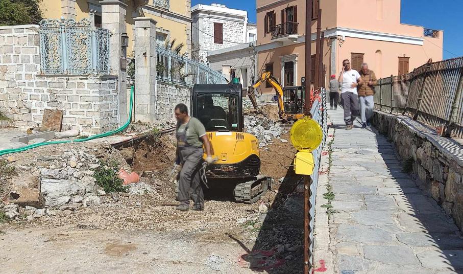 “Οπότε, τώρα άρχισαν και κάνουν τις απαραίτητες εργασίες αποξήλωσης από τα πεζοδρόμια, αφαιρούν τα μάρμαρα και προχωρούν για να γίνουν οι εργασίες για τις γεωτρήσεις. Τις επόμενες μέρες περιμένουμε και το γεωτρύπανο στο νησί για να αρχίσουν οι υπόλοιπες εργασίες”, συμπλήρωσε χαρακτηριστικά, επισημαίνοντας πως, “αυτή τη στιγμή ο εργολάβος έχει ξεκινήσει ξανά στην περιοχή του Βούρλη και γίνεται η προεργασία για να έρθει το γεωτρύπανο”.