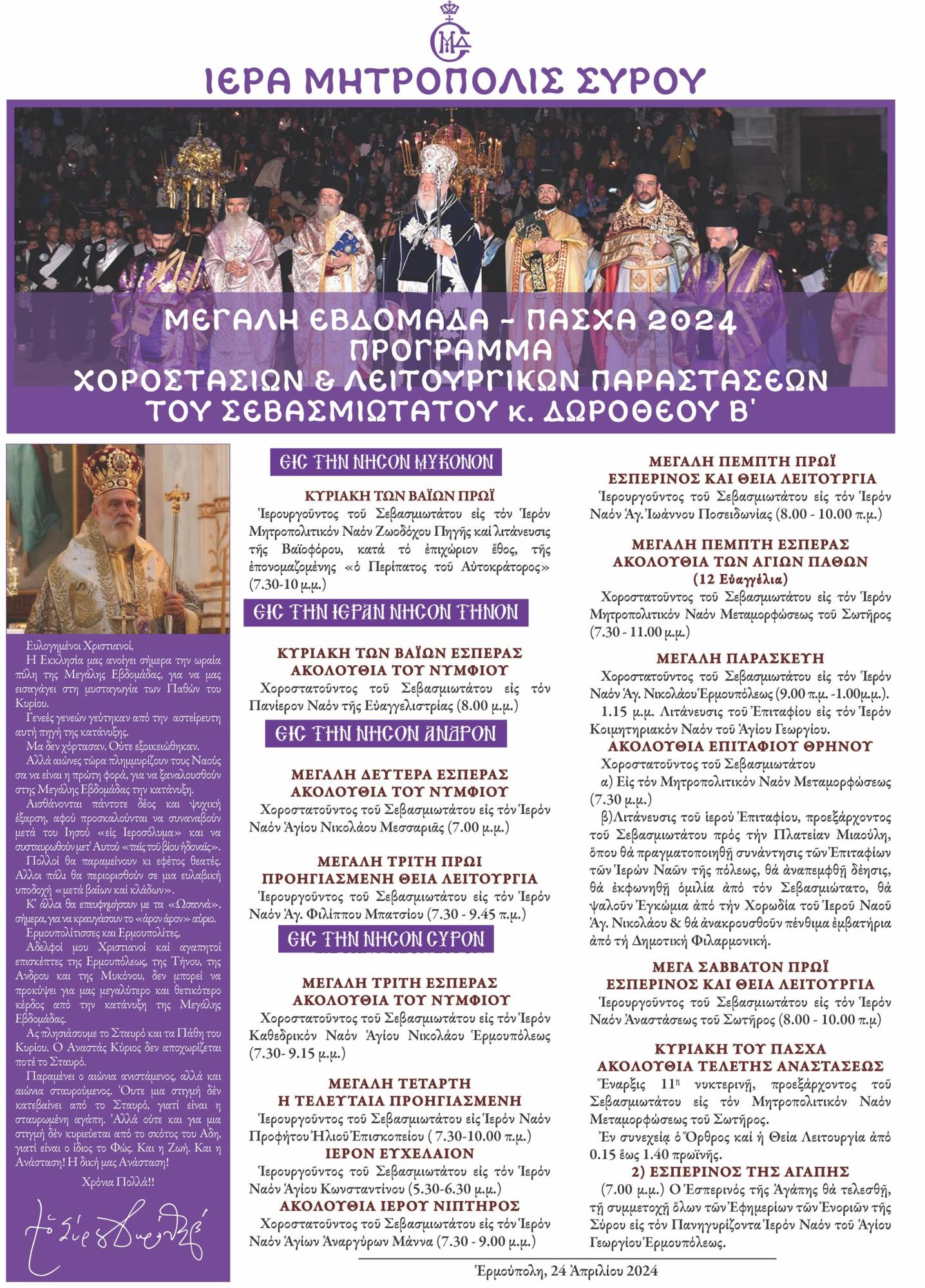 Πρόγραμμα Μεγάλης εβδομάδας από την Ιερά Μητρόπολη Σύρου Δευτέρα 29 Απριλίου 2024 - 15:56 Συντάκτης: Ρένα Ρούσσου Κείμενο Βλέπε εικόνα. Αριθμός Φύλλου 6359 Κατηγορία Ανακοίνωση