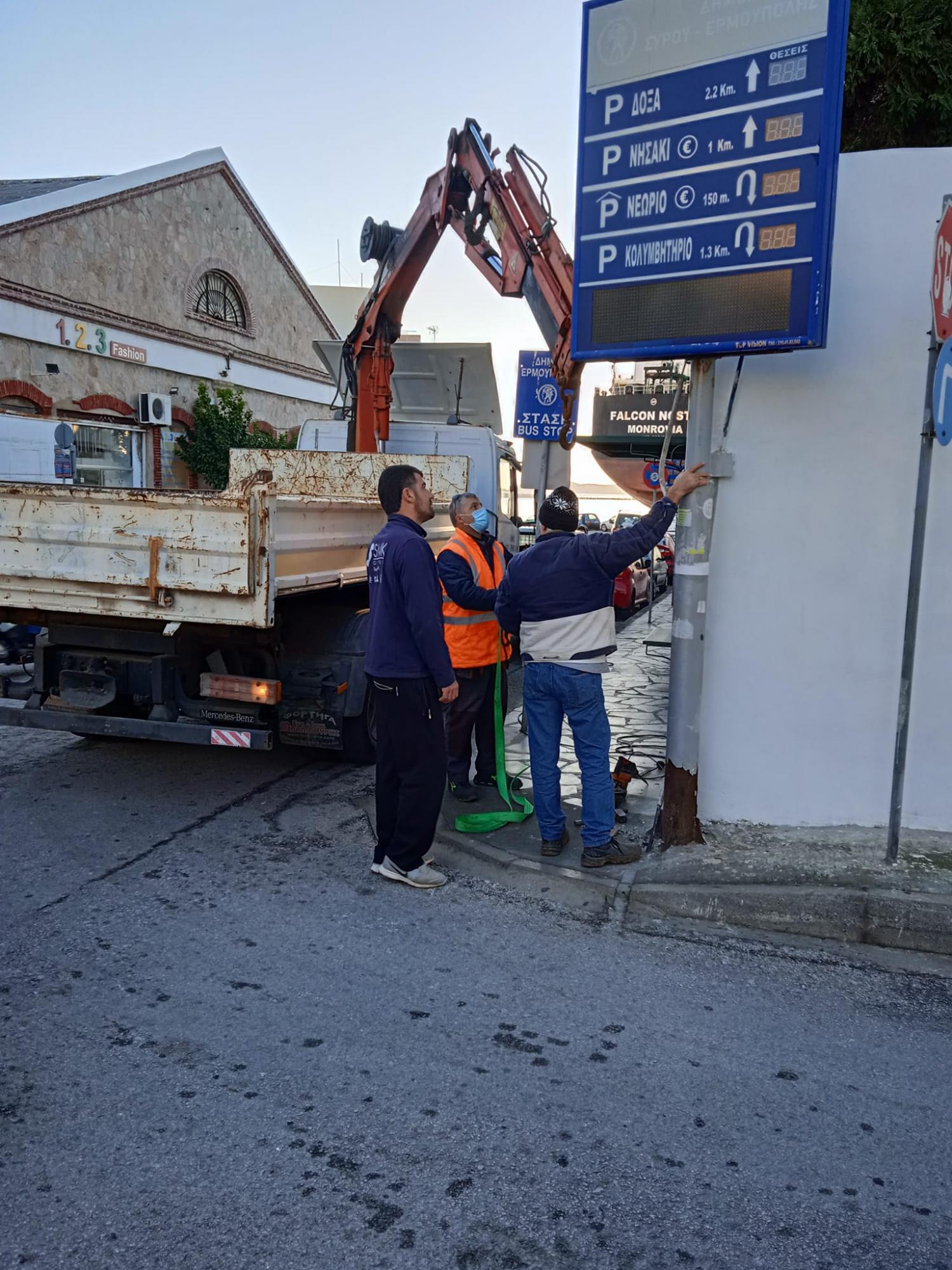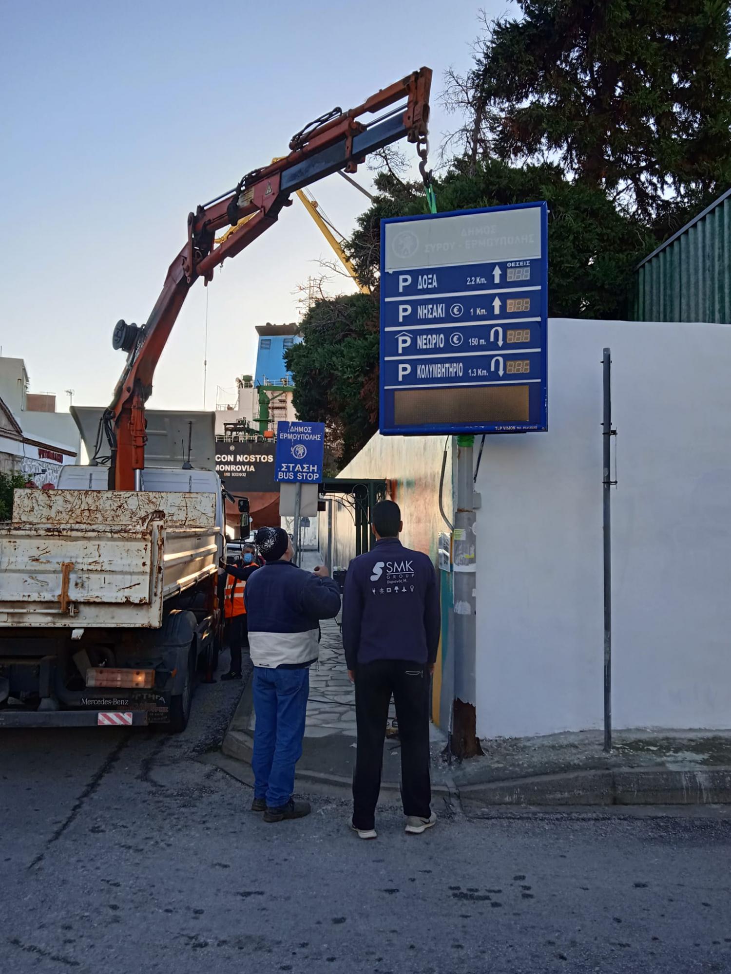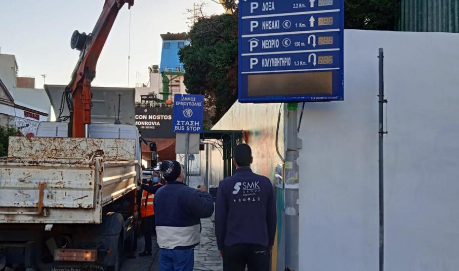 Ακριβοπληρωμένος αλλά παντελώς άχρηστος αφέθηκε να γίνει ο εξοπλισμός των ηλεκτρονικών πινακίδων ενημέρωσης των οδηγών που ήταν τοποθετημένος πλησίον στάσεων της αστικής συγκοινωνίας στην Ερμούπολη της Σύρου, με αποτέλεσμα η σημερινή Δημοτική Αρχή να αναγκαστεί να τον απομακρύνει, καθώς η εικόνα του προκαλούσε γενικότερη αισθητική υποβάθμιση στο ιστορικό κέντρο.