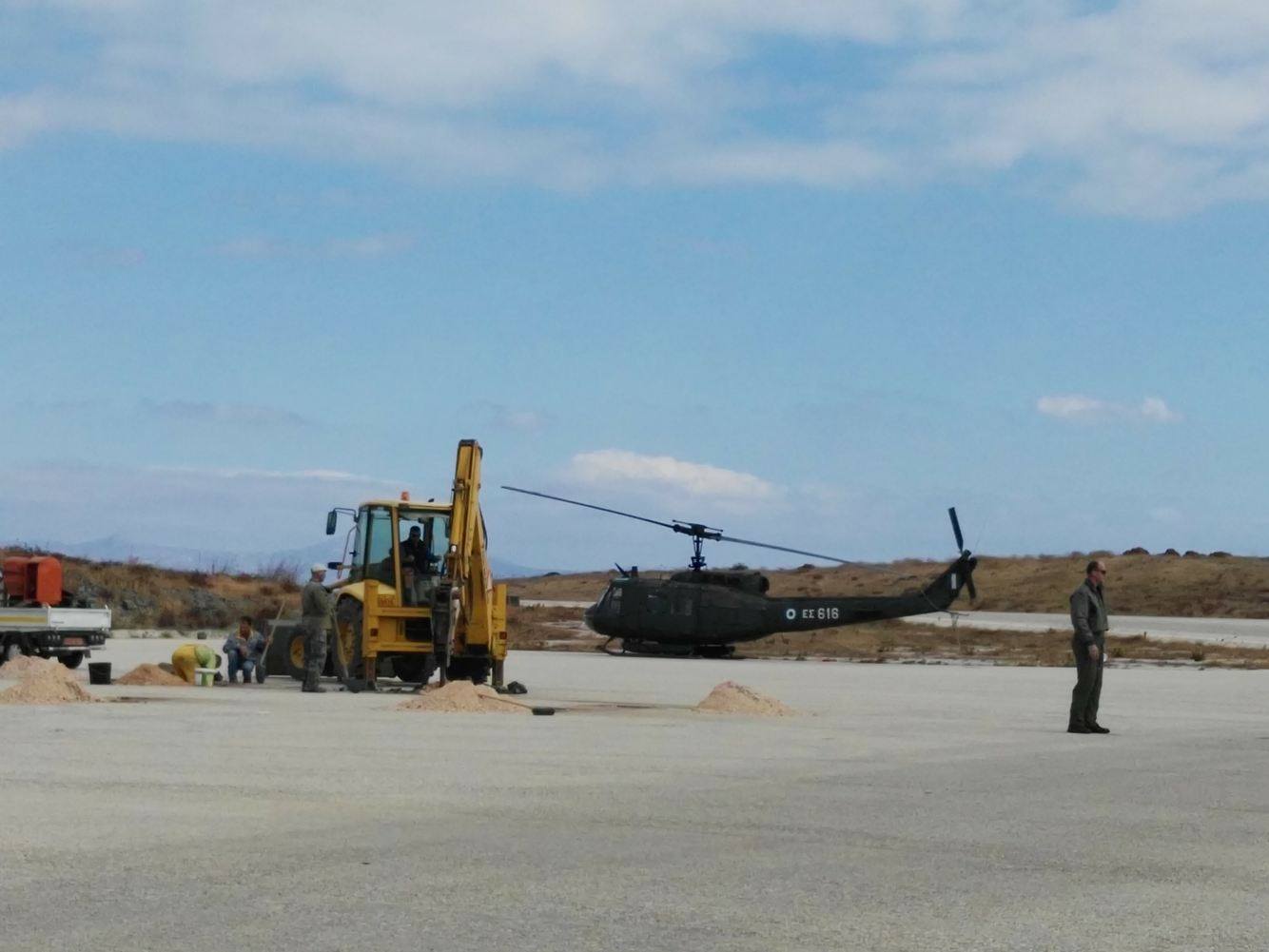 Αξίζει να τονισθεί πως, καθ΄ όλη τη διάρκεια της διαμόρφωσης της βάσης αεροδιακομιδών, στο αεροδρόμιο βρίσκονται και τεχνικοί της Πολεμικής Αεροπορίας, οι οποίοι έφθασαν χθες με ελικόπτερο.