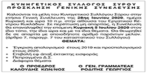 Πρόσκληση Γενικής Συνέλευσης Κυνηγετικού Συλλόγου Σύρου Τρίτη 16 Ιουνίου 2020 - 11:26 Συντάκτης: Κατερίνα Βιδάλη Κείμενο Βλέπε εικόνα Αριθμός Φύλλου 5393 Κατηγορία Πρόσκληση Γεν. Συνελεύσεων