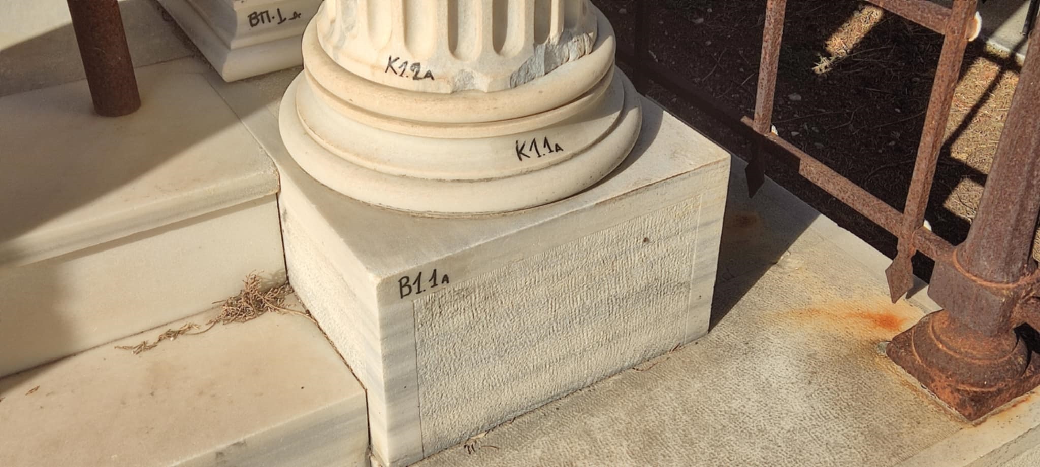 Η “Κοινή Γνώμη” αποτύπωσε χθες φωτογραφικά – από κοινού με τον πρόεδρο της αρμόδιας δημοτικής Επιτροπής, Δομένικο Σαγκινέτο - τα δύο ταφικά μνημεία στα οποία ολοκληρώθηκαν οι αποτυπώσεις, καθώς ακολουθεί η σταδιακή αποσύνθεσή τους. Ήδη μαρμάρινο μέρος του μαυσωλείου της οικογένειας Πρώιου, έχει αφεθεί προσεκτικά στο έδαφος και πάνω σε ειδική βάση και ο ανάδοχος θα προχωρήσει για να υλοποιήσει τα προβλεπόμενα, βάσει μελέτης.